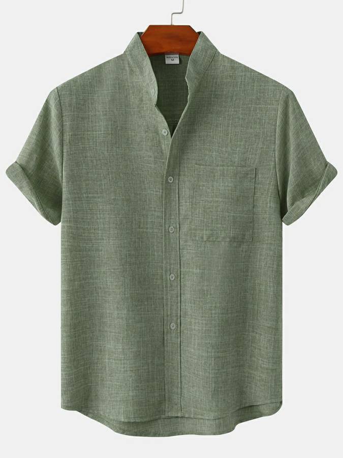 Multicolor Men's Cotton Linen Casual Short Sleeve Shirt