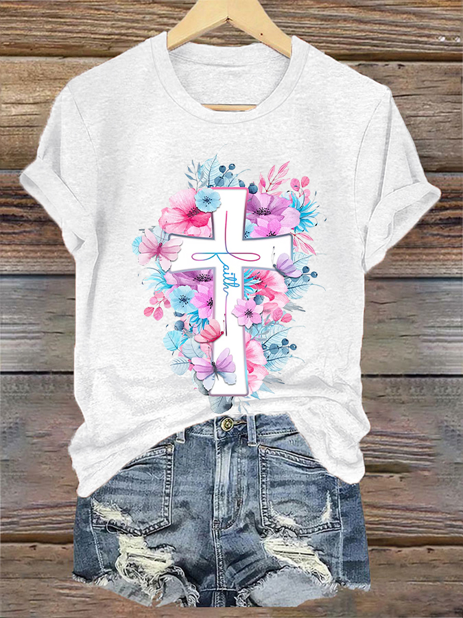 Women's Faith Cross Printed Short Sleeve O-neck T-Shirt
