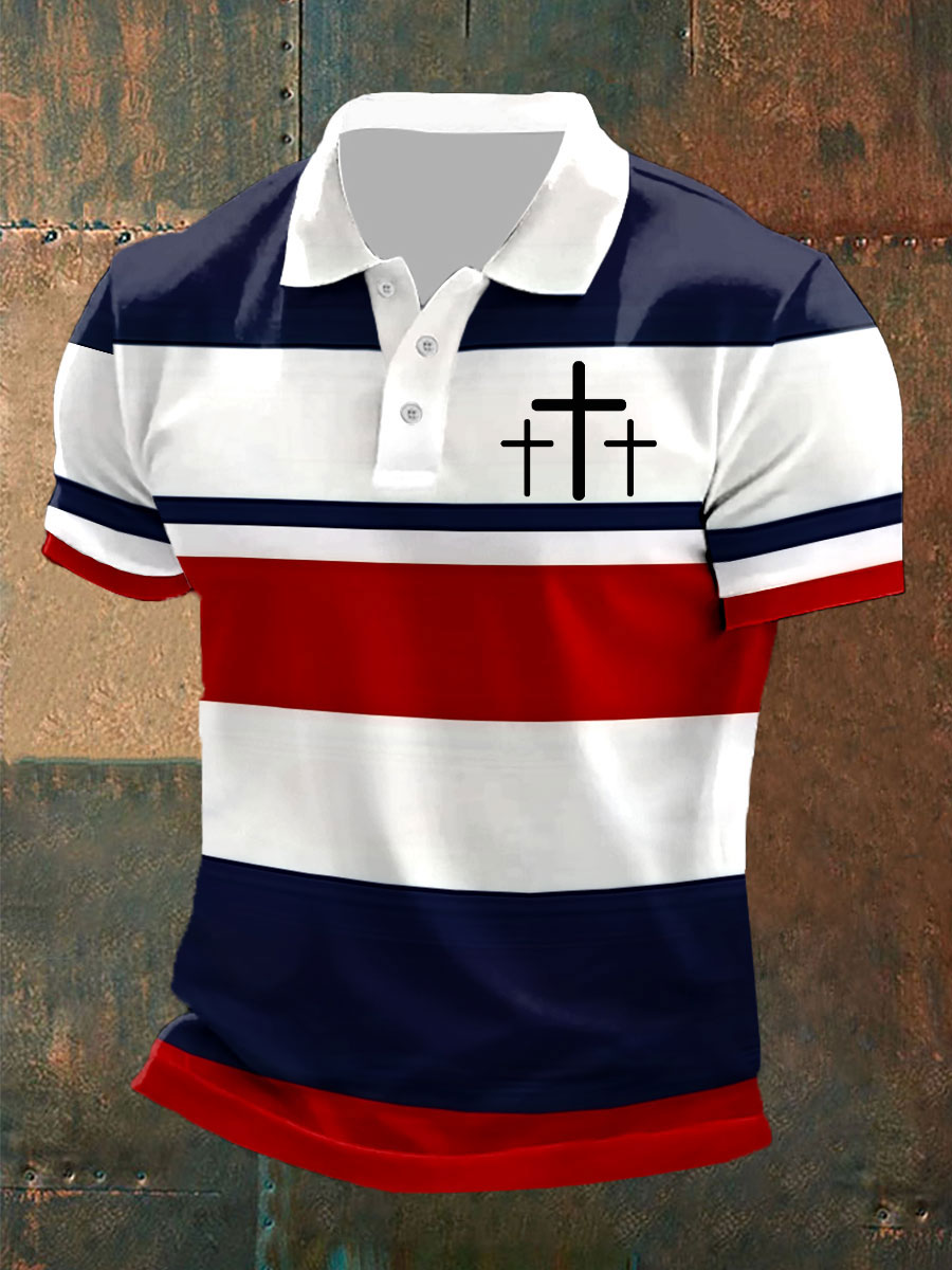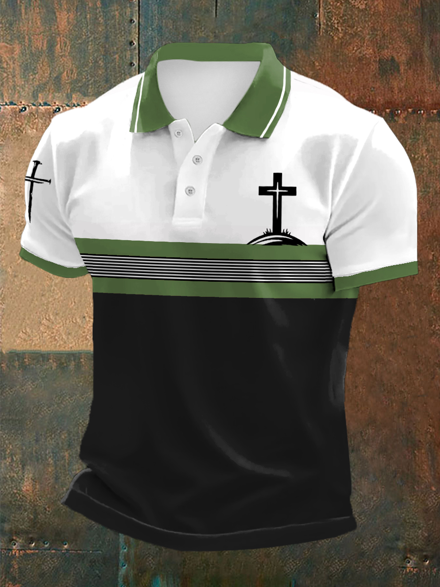 Men's Faith Cross Printed Short Sleeve Polo Shirt