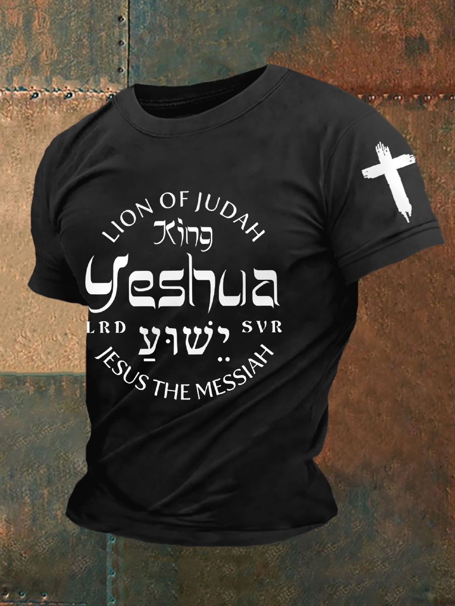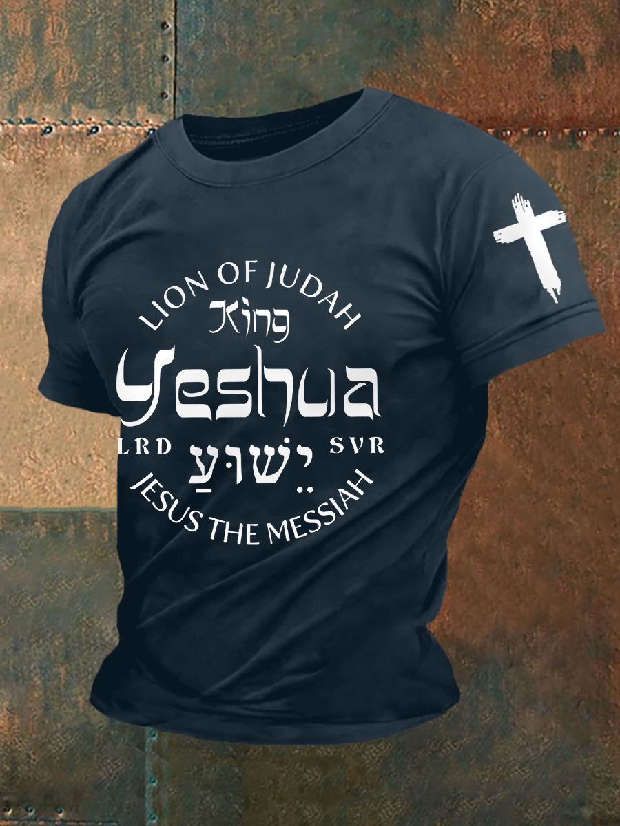 Men's Yeshua The Lion Of Judah Cross Faith Casual Tee