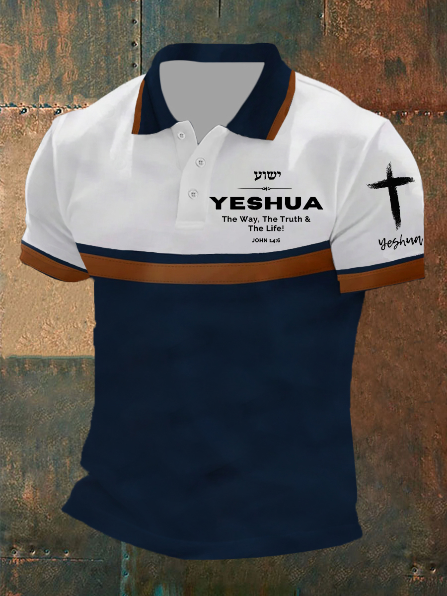 Men's Bible Verse Yeshua Faith Cross Printed Short Sleeve POLO Shirt