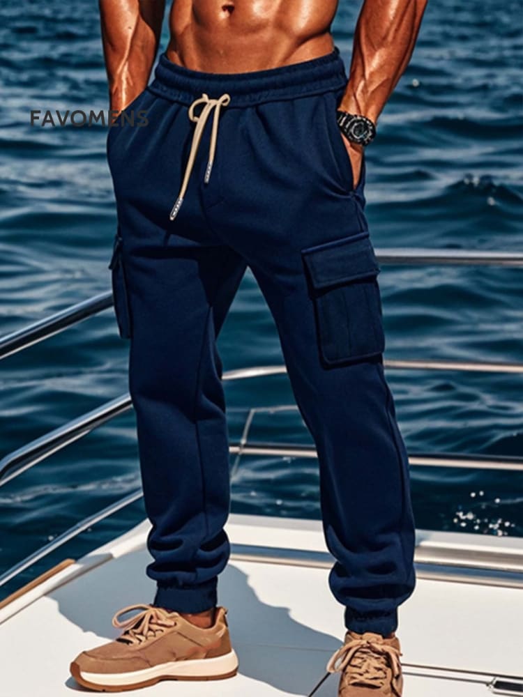 Men's Autumn and Winter Fleece Casual Overalls Men's Multi-pocket Pants Sports Casual Trousers