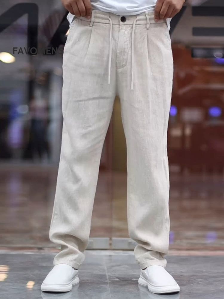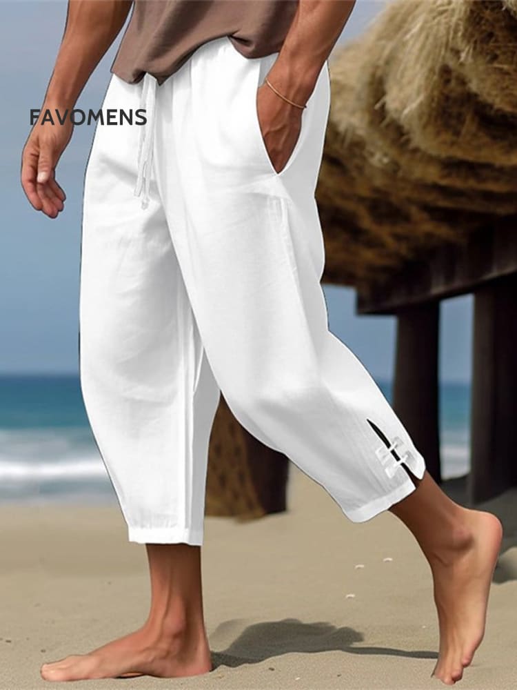 Men's Casual Cotton Linen Short Sleeve Pants Two-Piece Set
