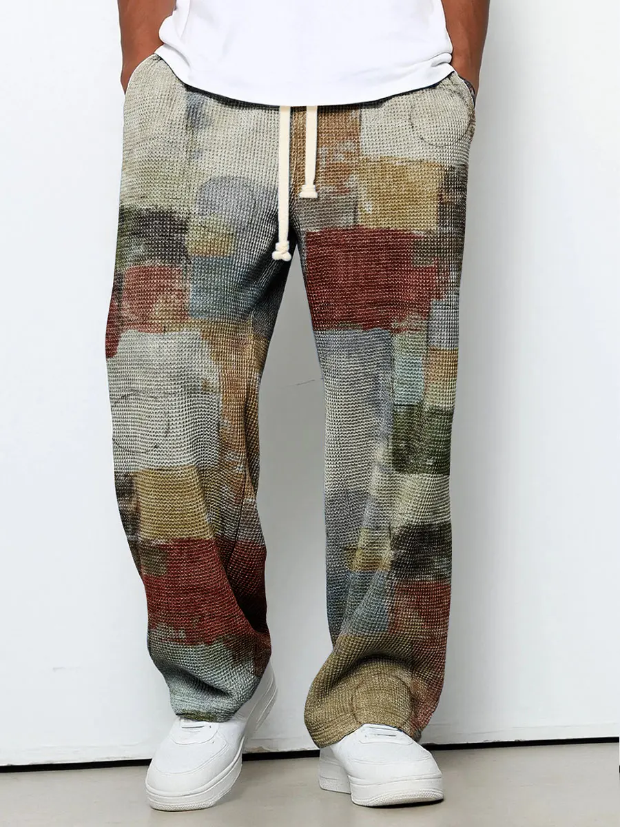 Retro Patchwork Pattern Print Casual Suit Pants