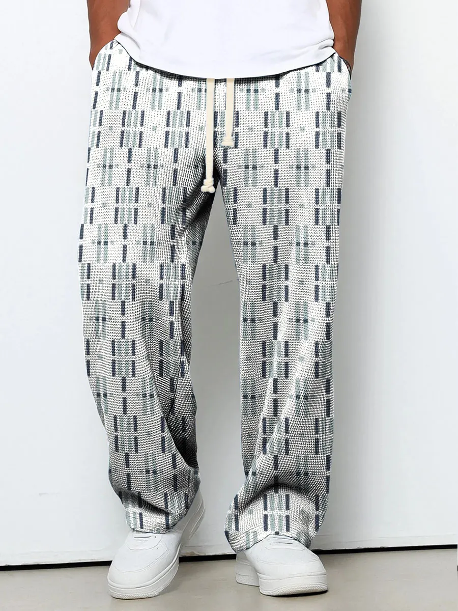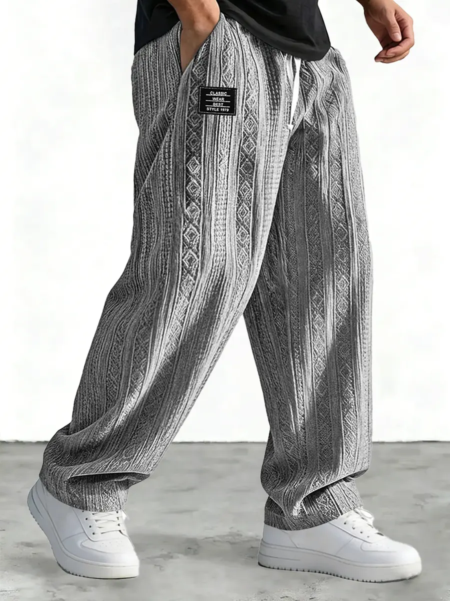 Men's high-quality water ripple white pants casual wide-leg pants loose and versatile