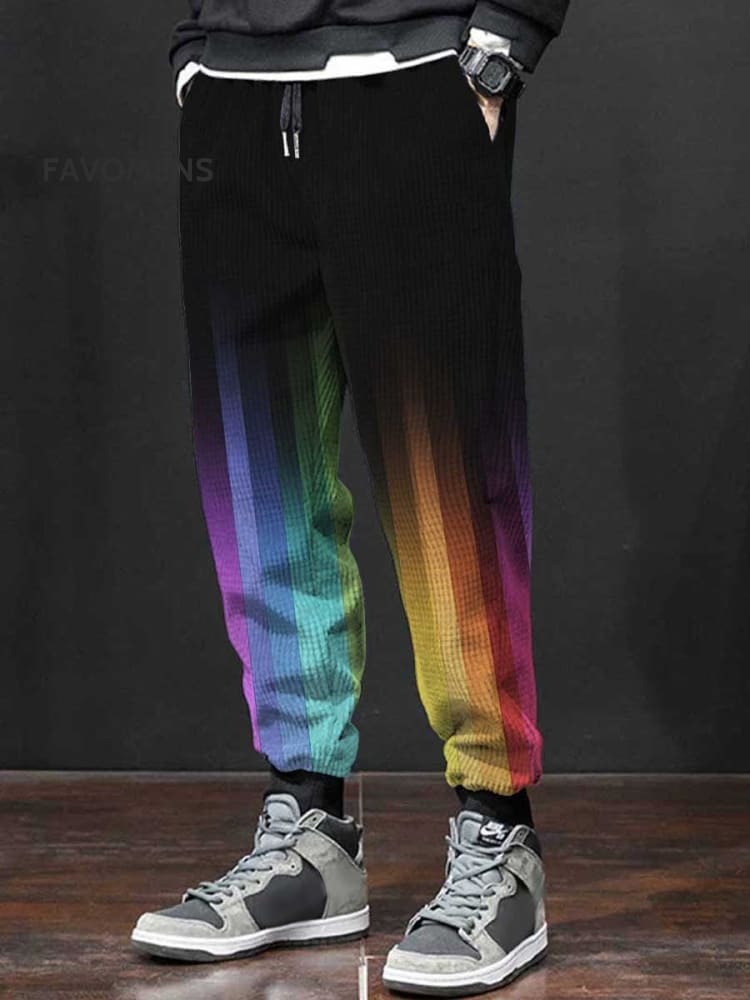 Men's Retro Rainbow Gradient Art Print Casual Pants