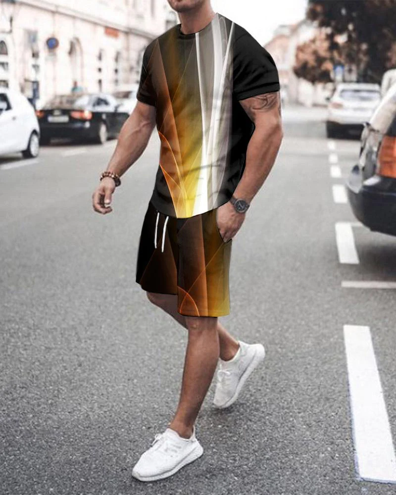 Men's Gradient Short Sleeve Shirt Walking Set