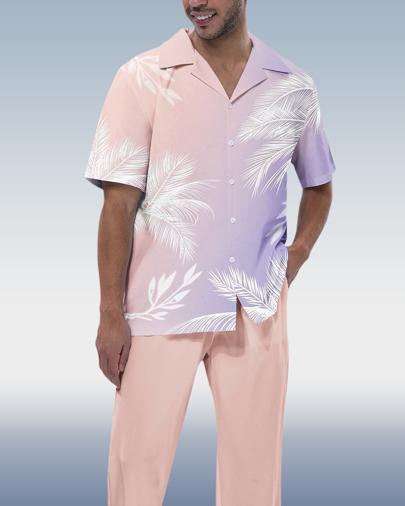 Men's Hawaiian Print Short Sleeve Walking Suit