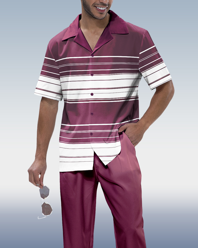 Vertical Striped Walking Wear 2 Piece Short Sleeve Set