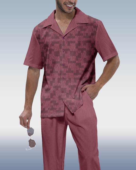 Men's Vintage Print Short Sleeve Shirt Walking Set