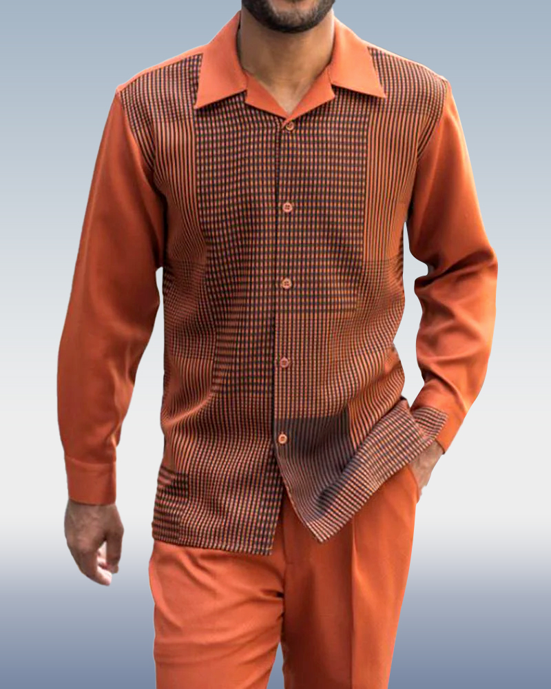 Men's Burgundy Geometric Print Walking Suit 2 Piece LongSleeve Set