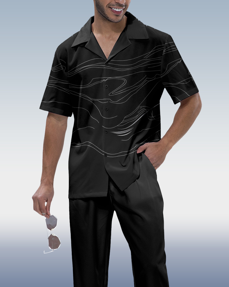 Men's Black Lineart Short Sleeve Walking Set