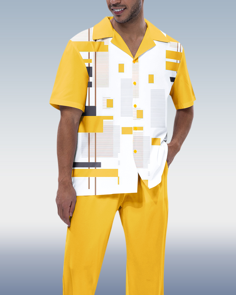 Men's Color Block Print Short Sleeve Walking Suit