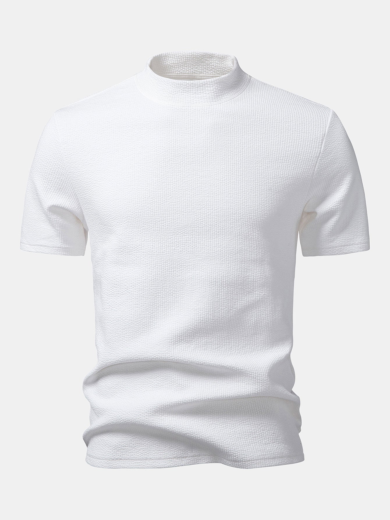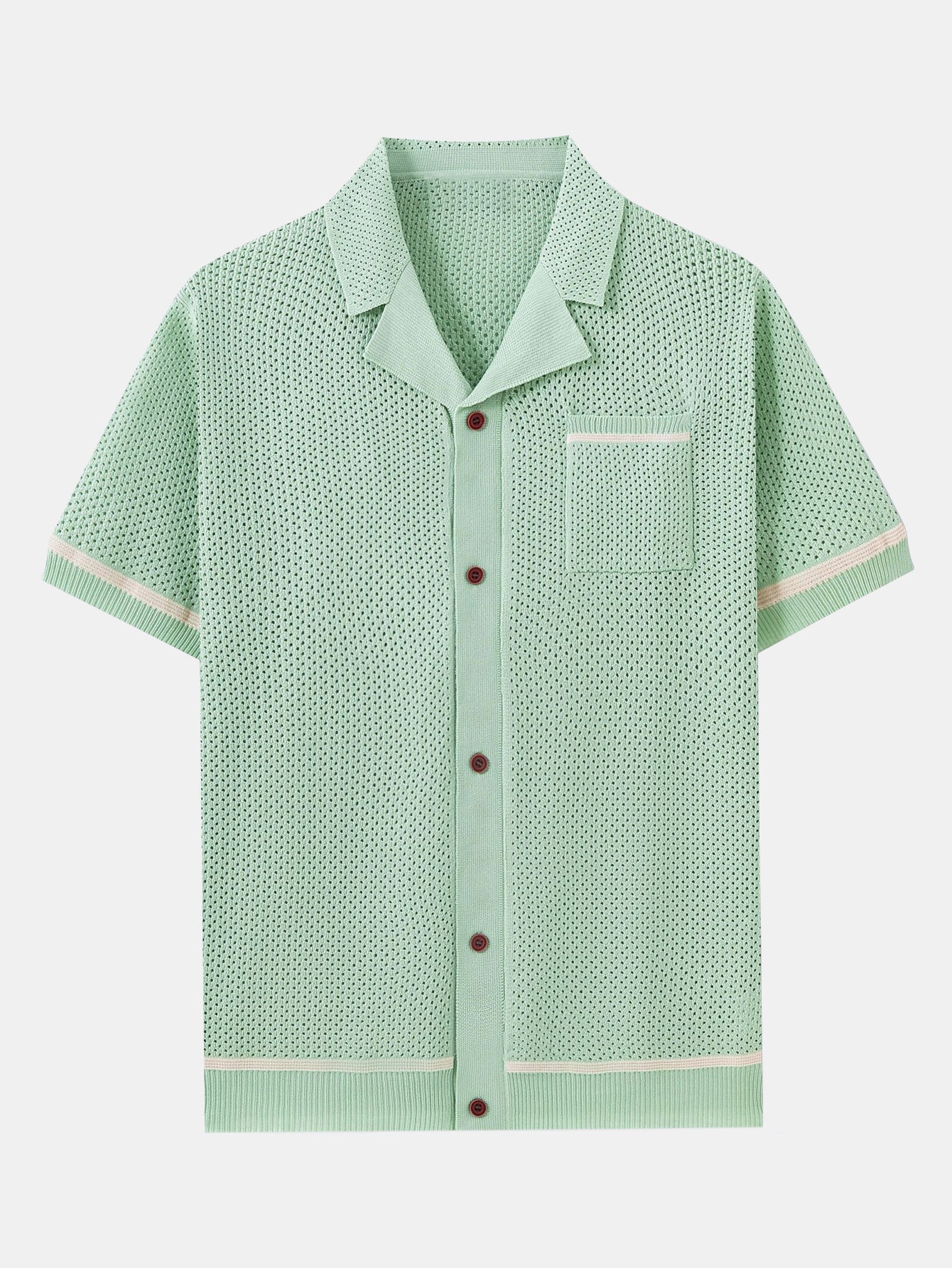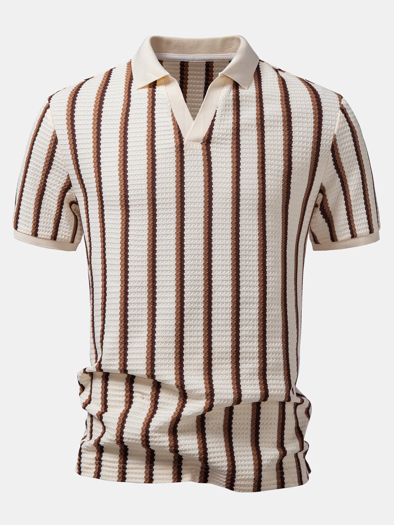 Striped Textured Johnny Collar Open Knit Polo