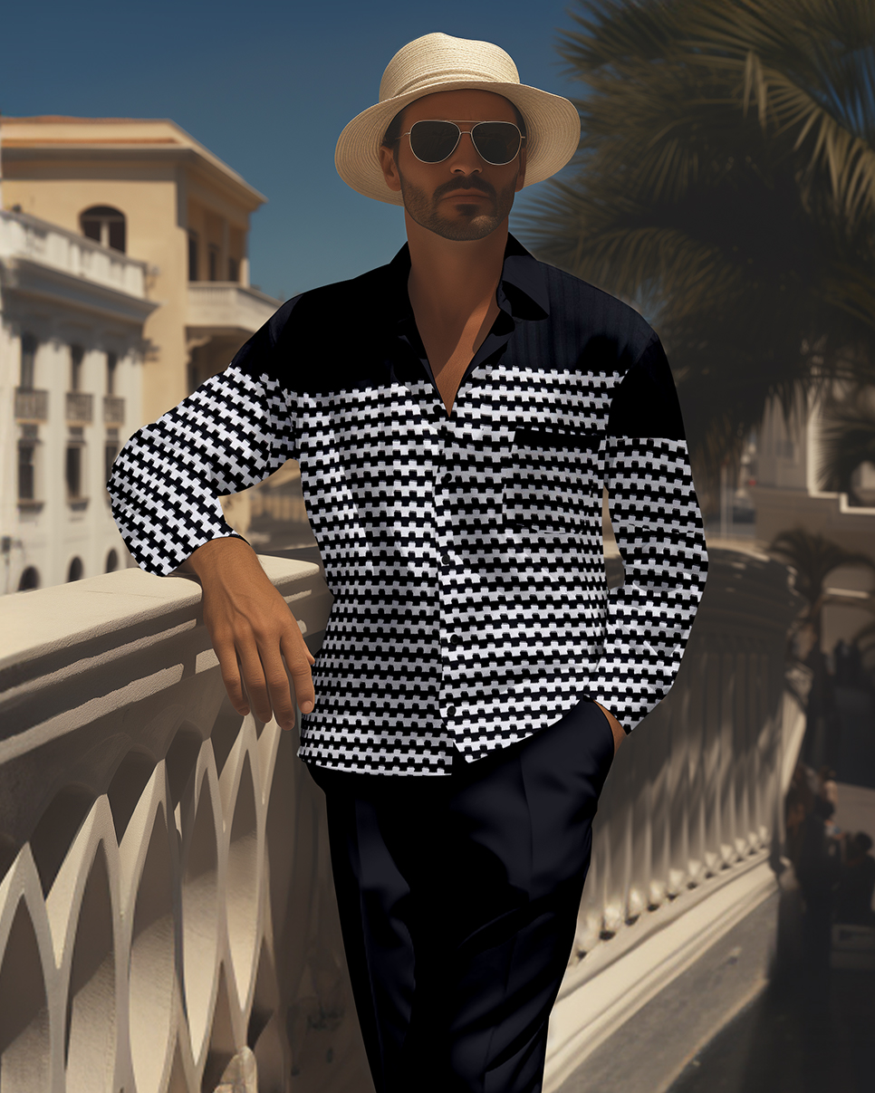 Men's Retro Printed Long Sleeve Shirt Walking Suit 548