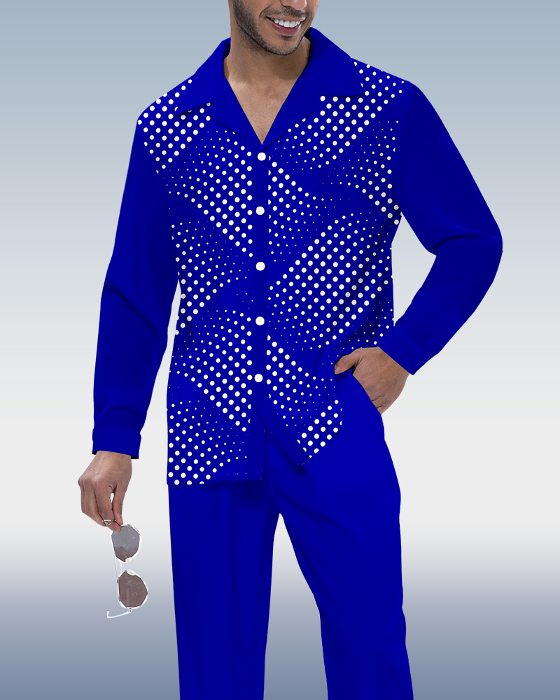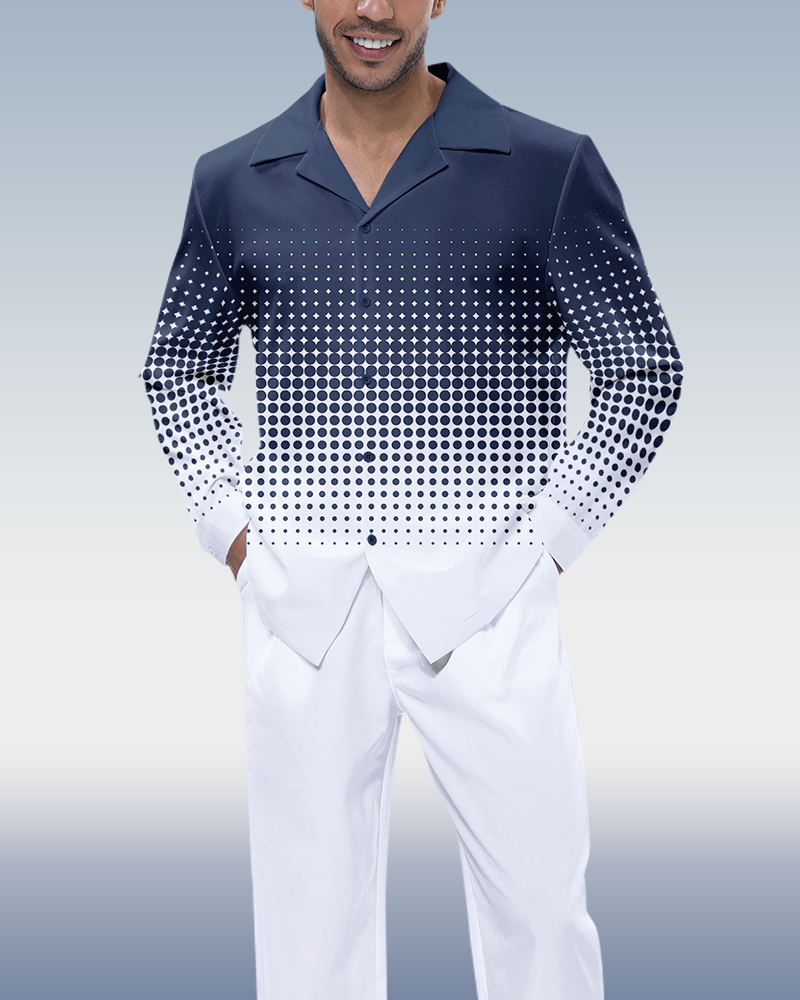 Men's Gradient Polka Dot Long Sleeve Shirt Walking Set 286
