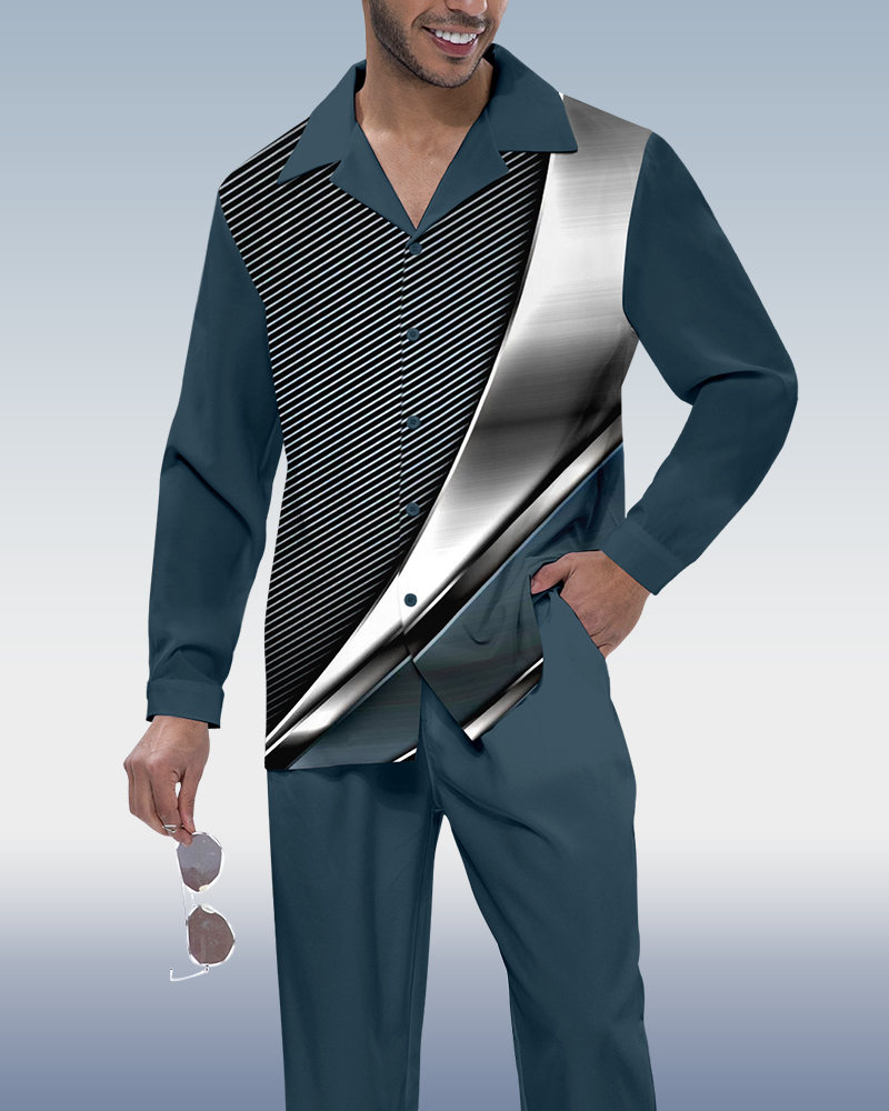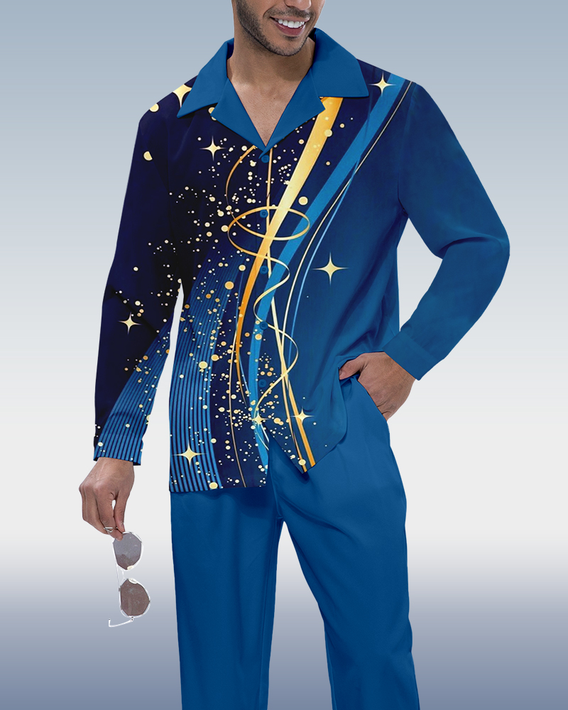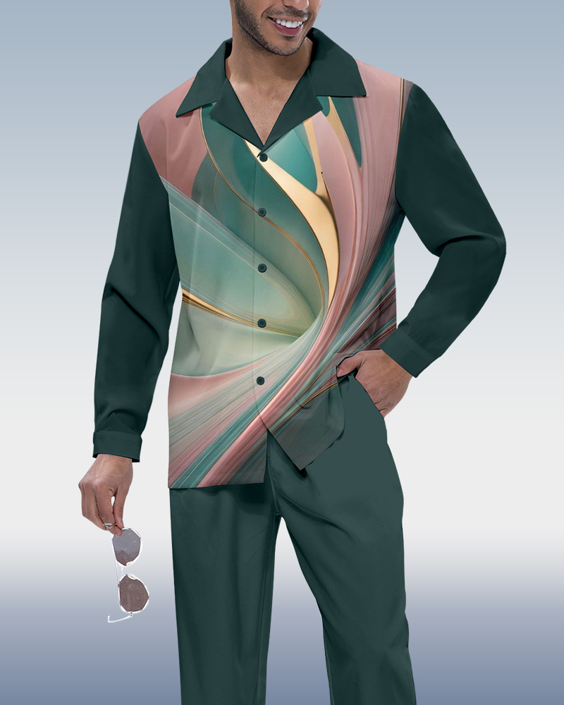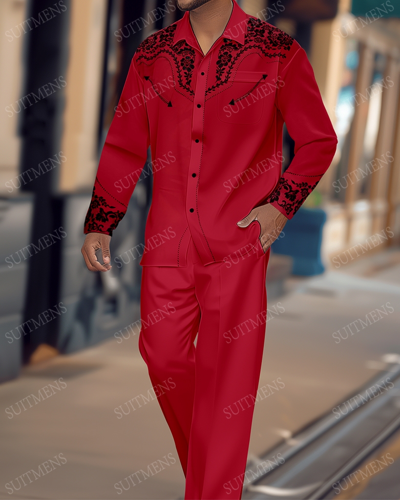 Men's Retro Printed Long Sleeve Shirt Walking Suit 528