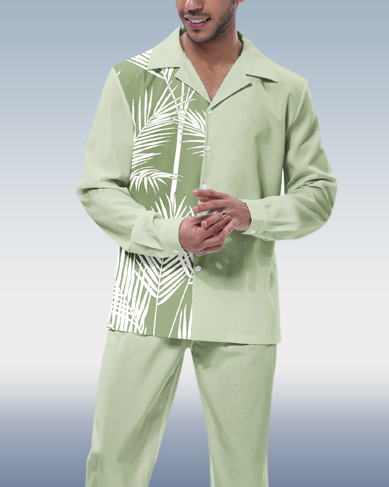 Men's Retro Printed Long Sleeve Shirt Walking Suit 545