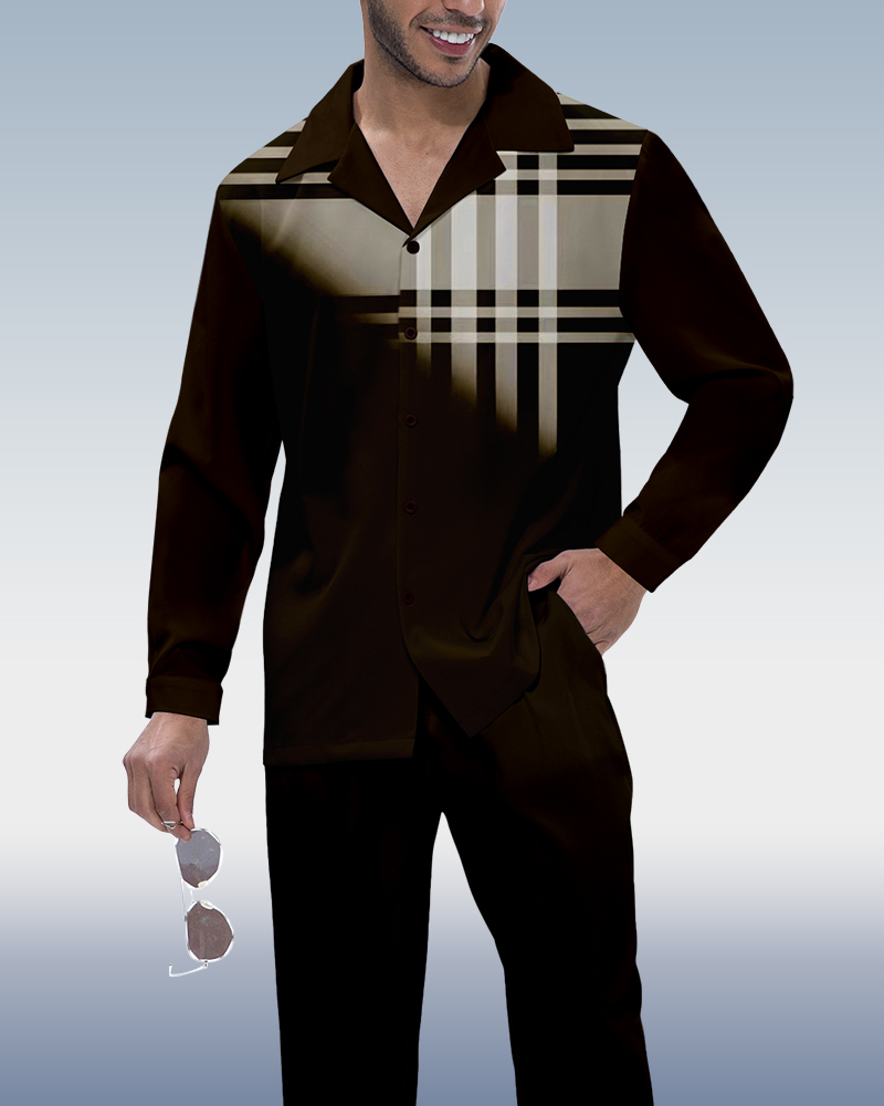 Brown Criss Pattern Walking Suit Long Sleeve Suit