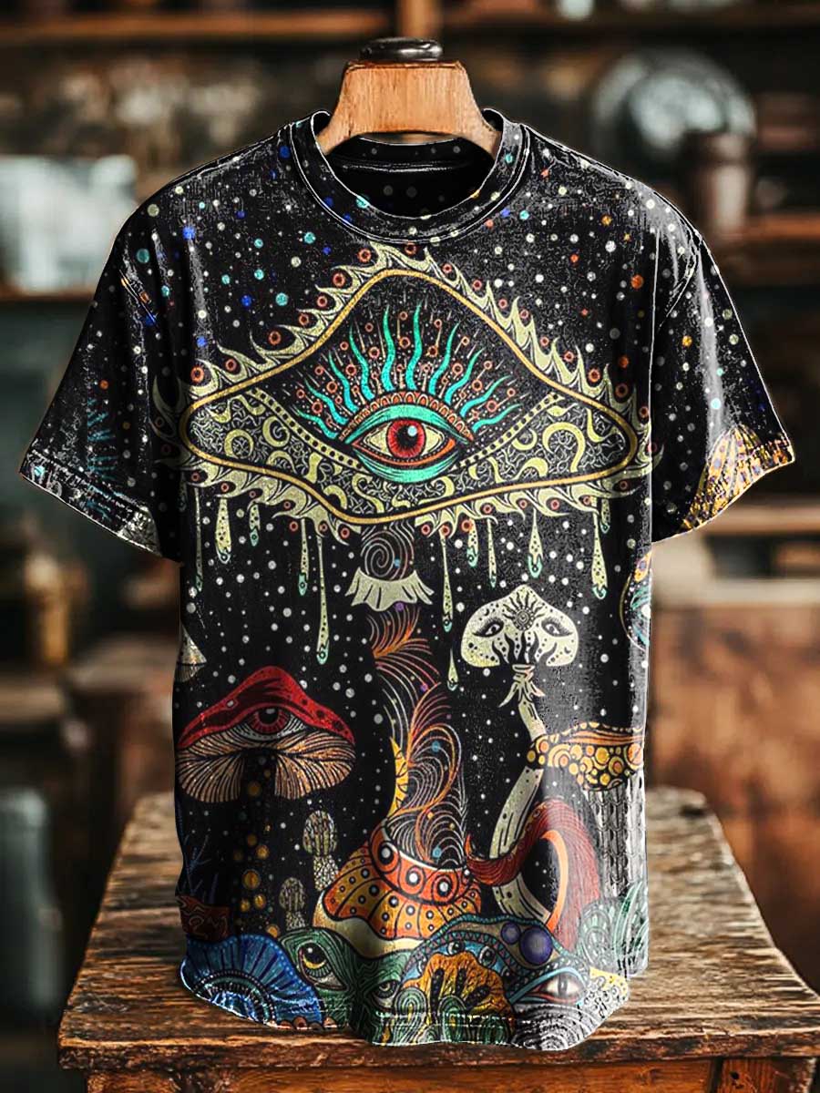 Retro Aged Mushroom Hippie Eyes Art Print T-shirt