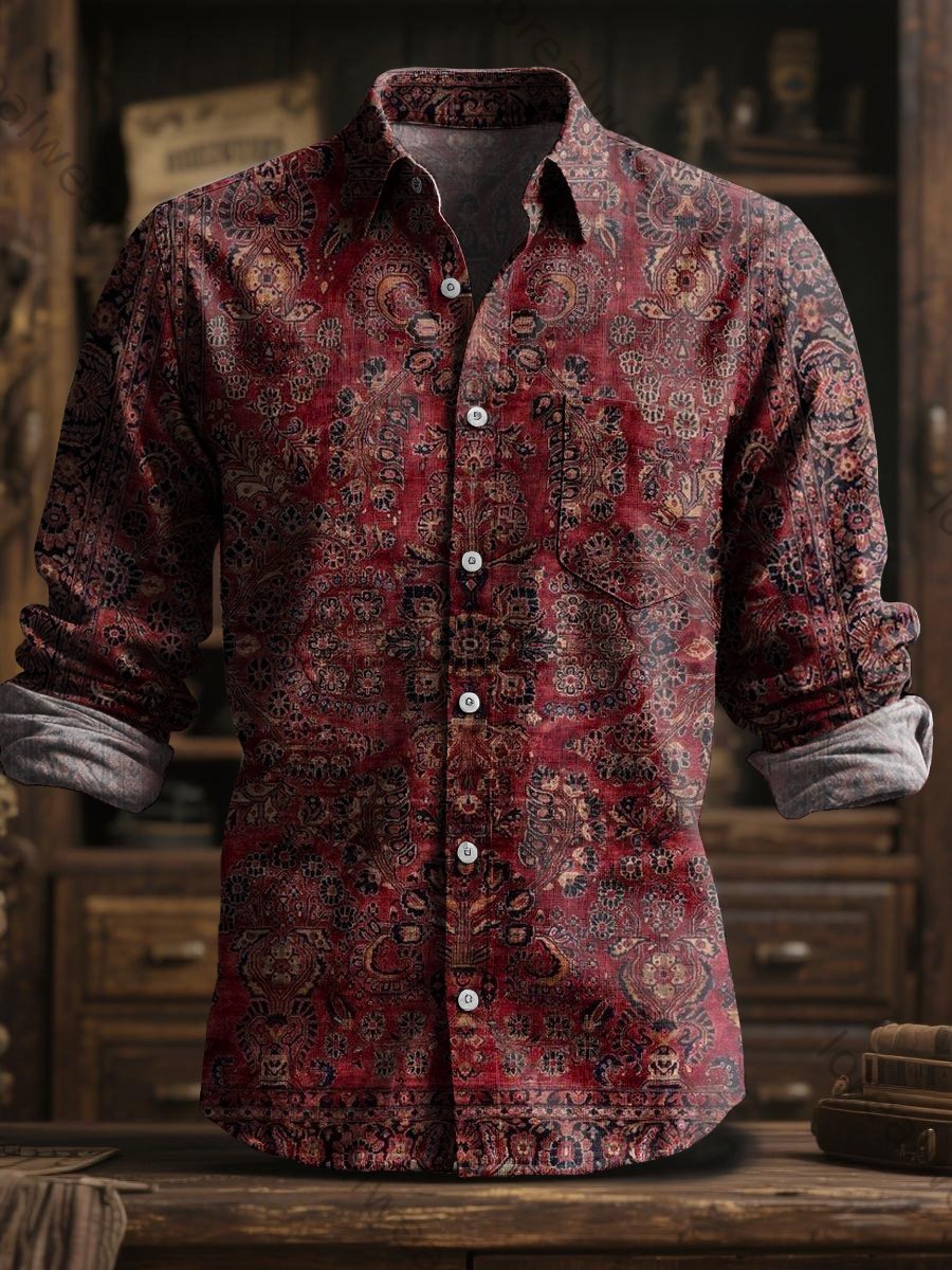 Retro Ethnic Pattern Vintage Print Casual Jacquard Shirt