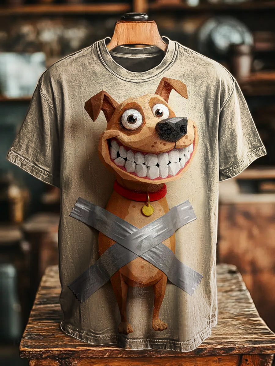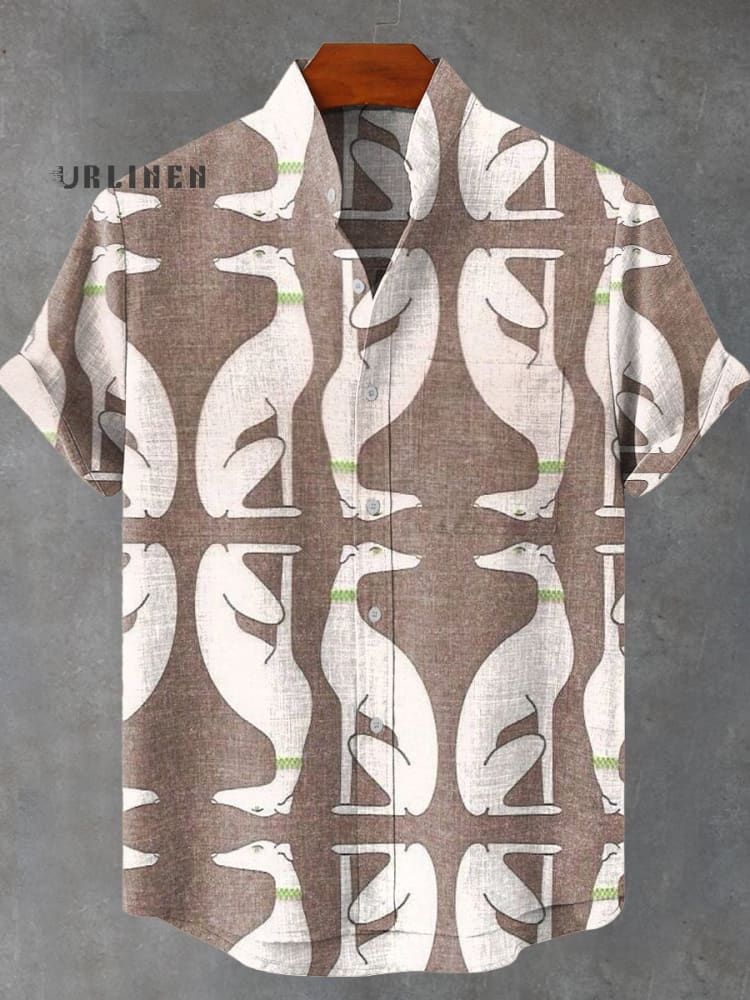 Retro Hand Drawn Illustration Style Dog Print Casual 100% Cotton Shirt