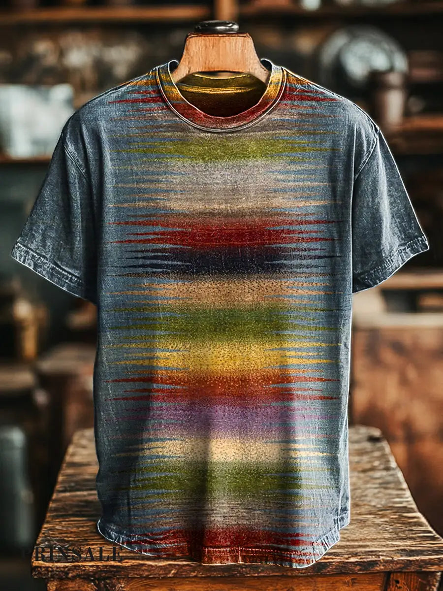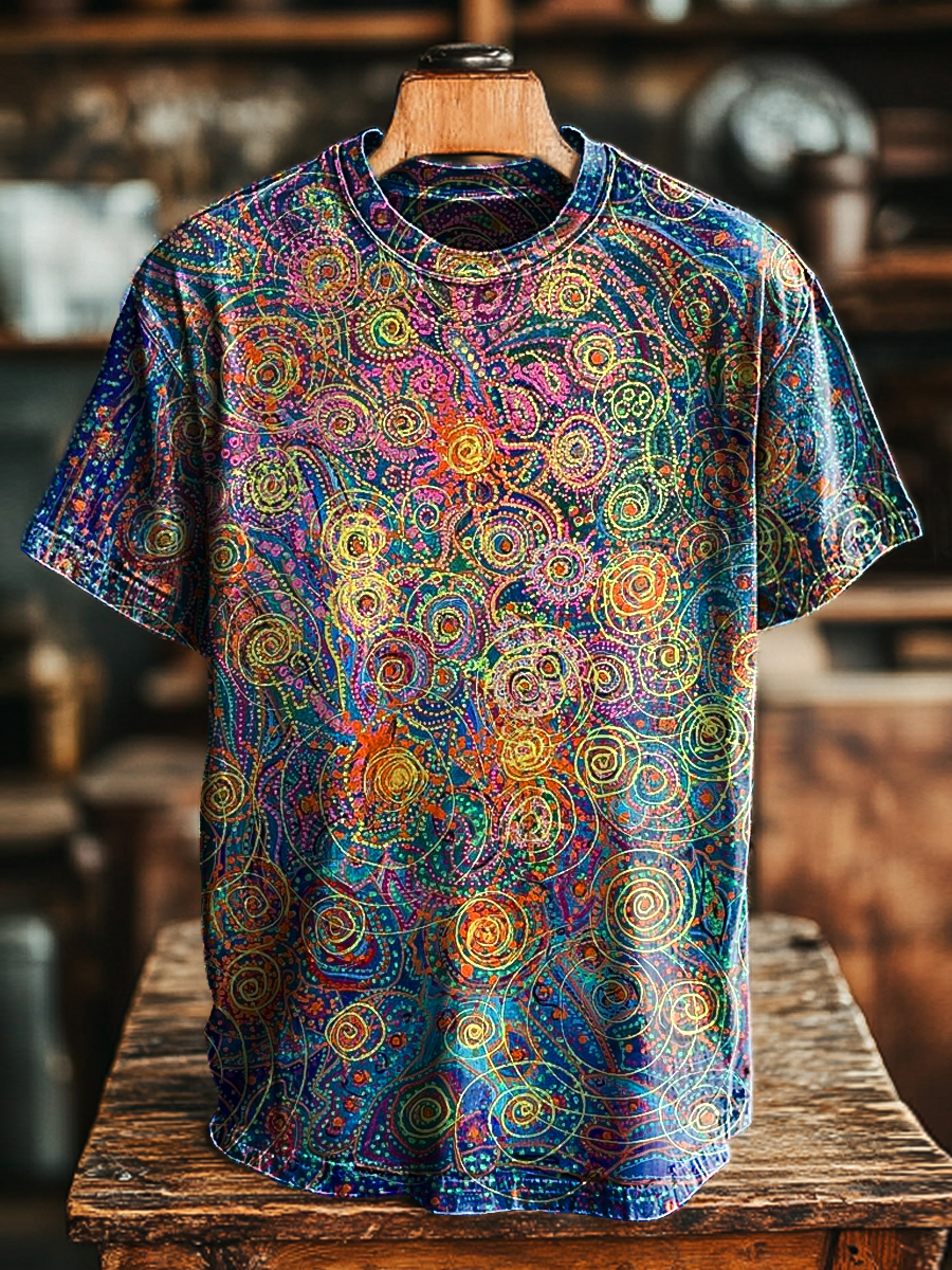 Vintage Retro Graffiti Gradient Colors Abstract Pattern Print Casual Short Sleeve T-shirt