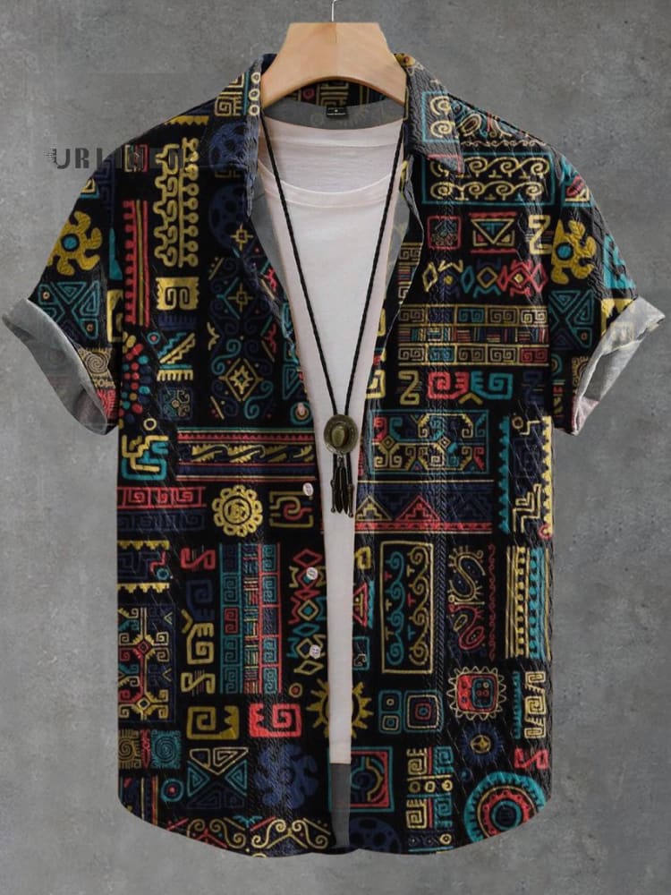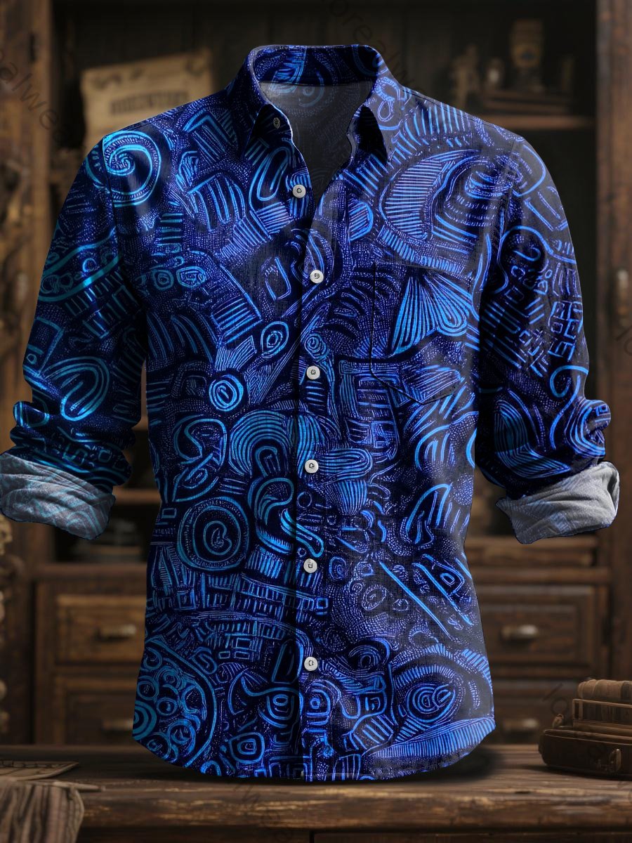 Retro Ethnic Geometric Print Casual Long-Sleeve Shirt