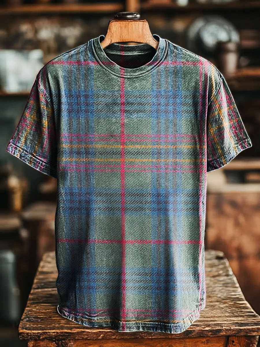 Retro Patchwork Plaid Print Long Sleeve Shirt