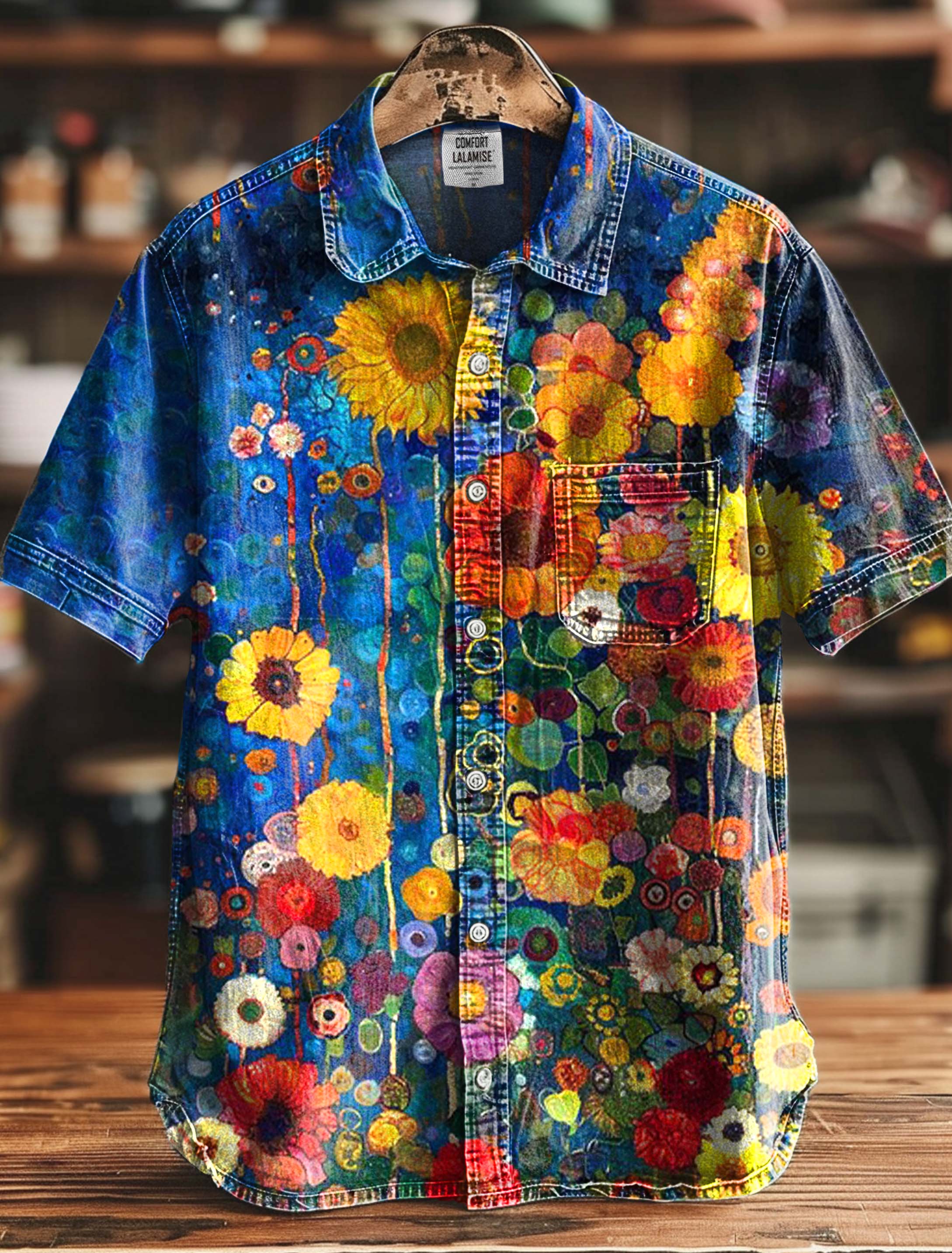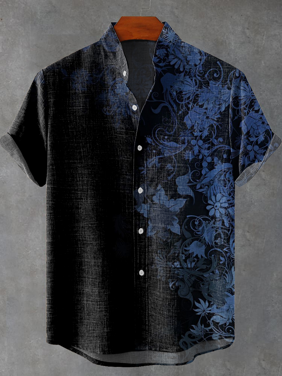 Blue flower Vintage Print Casual 100% Cotton Shirt