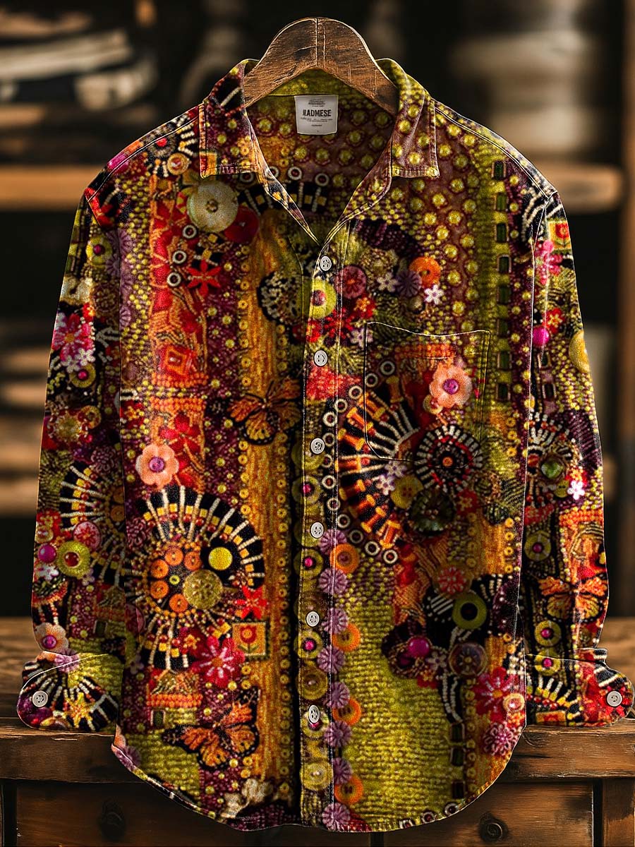 Retro Abstract Floral Ethnic Art Print 100% Cotton Long Sleeve Shirt
