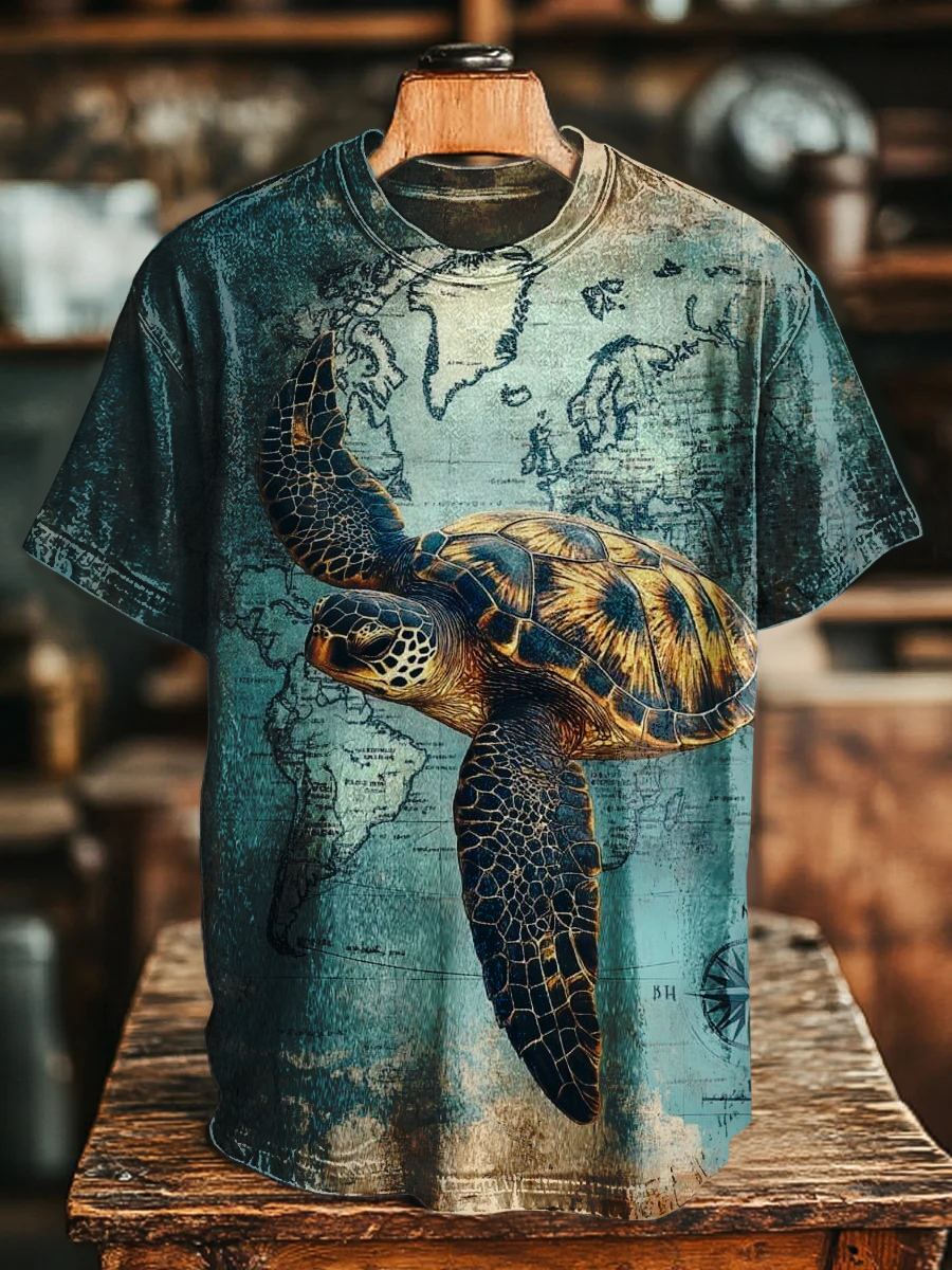 Unisex Retro Turtle Print Casual Loose Short Sleeve T-shirt