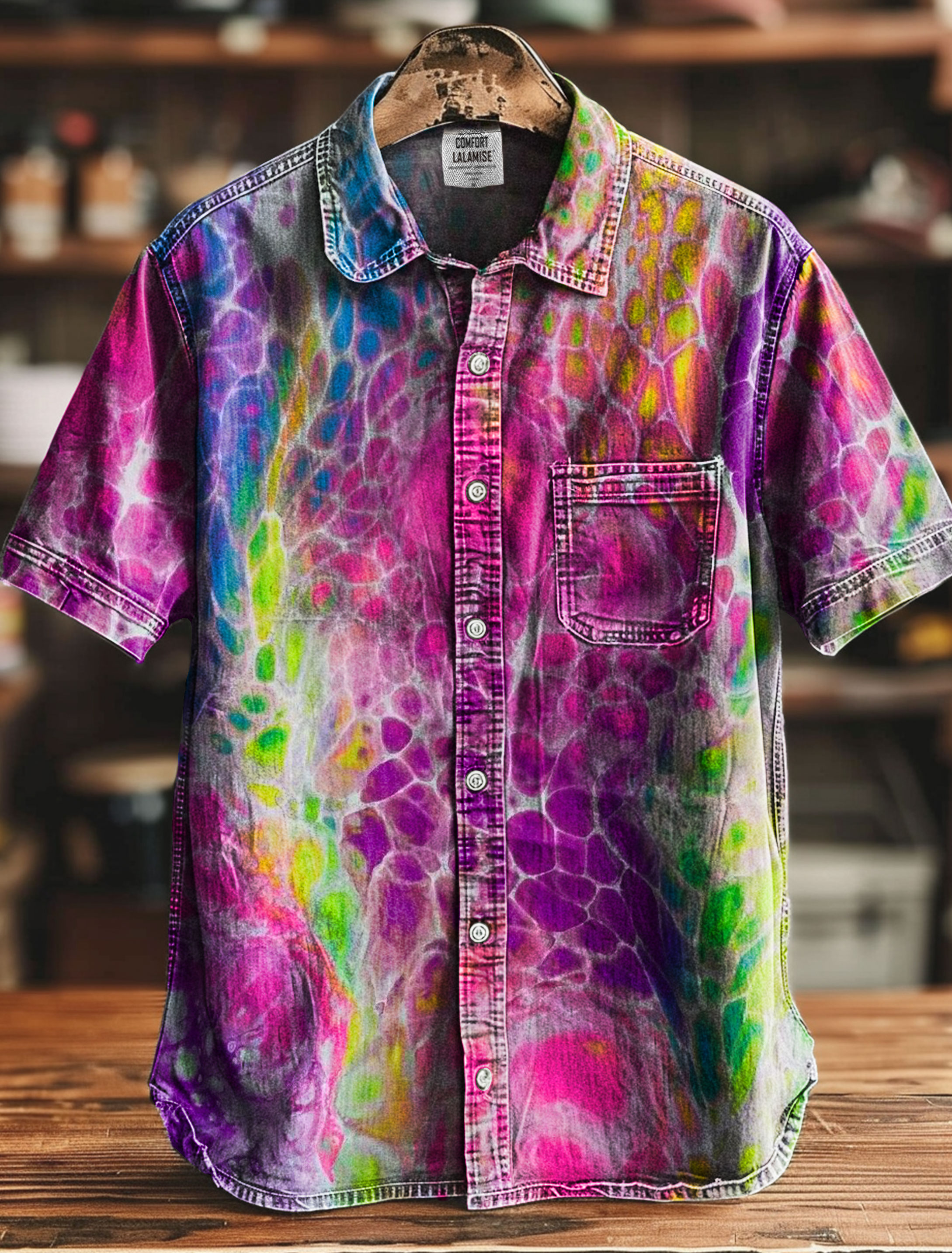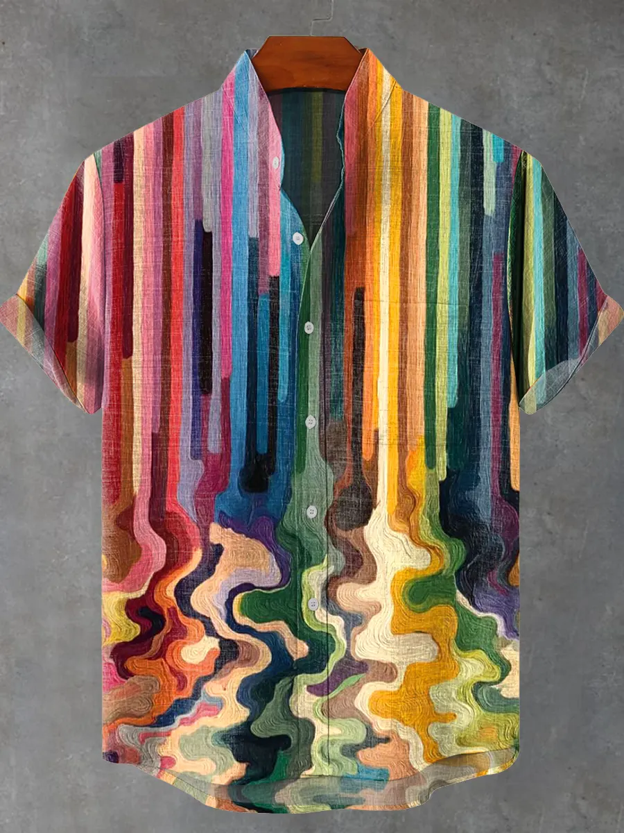 Retro Multicolor Abstract Art Print Casual 100% Cotton Shirt