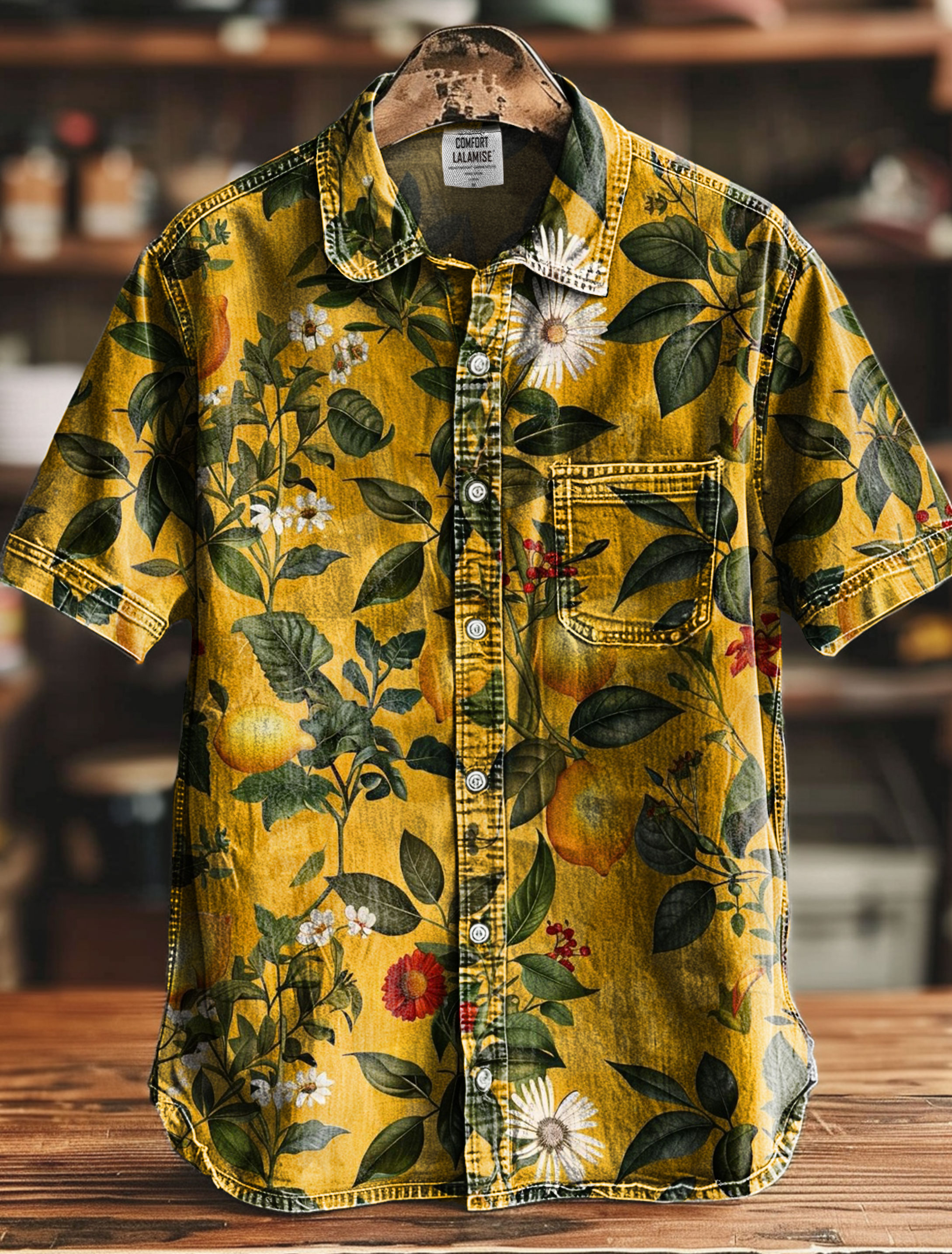 Retro Lemon Plant Art Print Casual 100% Cotton Shirt