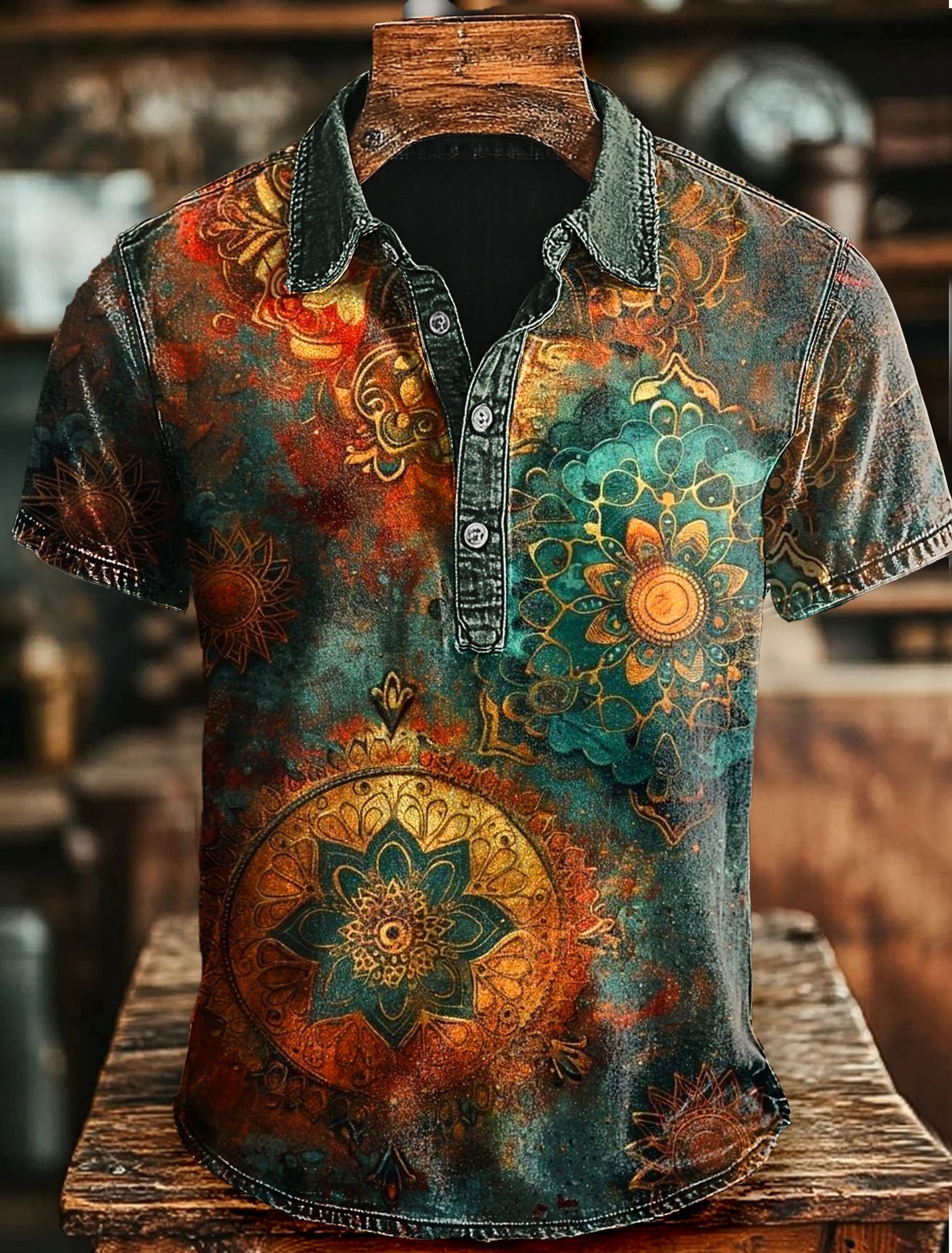 Retro Mandala Print Casaul Short SLeeve Polo Shirt