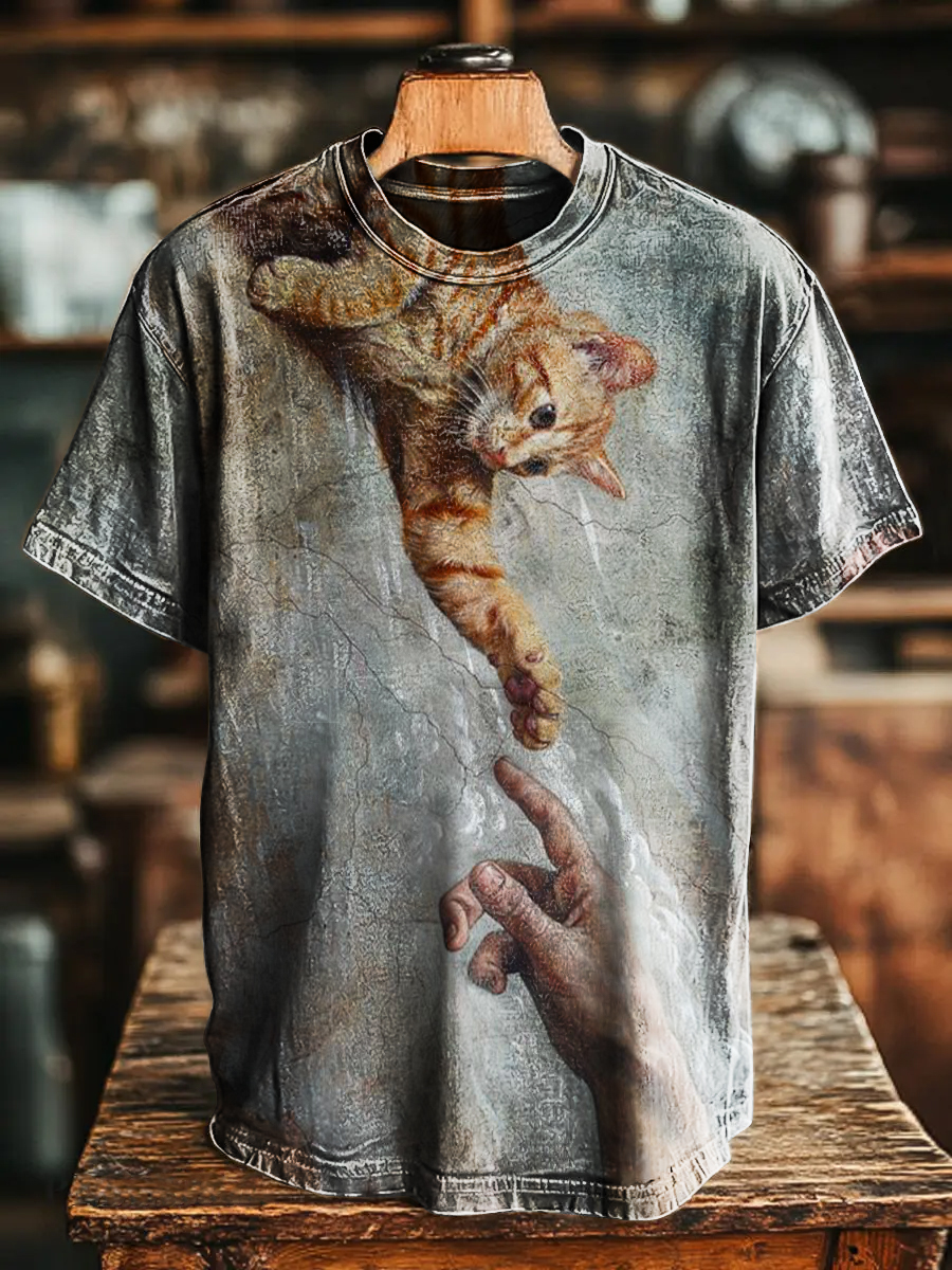 Retro Fun Cat Art Print Casual Short Sleeve T-shirt