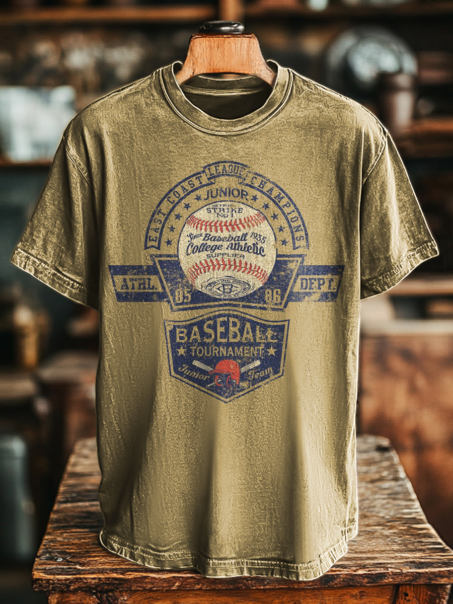 Unisex Retro Aged Baseball Print Casual Loose T-Shirt