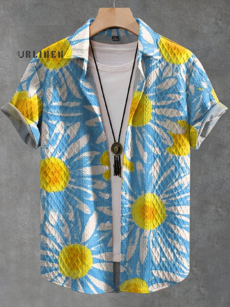 Retro Hand Painted Large Chrysanthemum Print Casual Jacquard Shirt