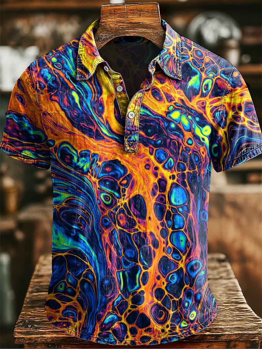Casual Retro Geometric Pattern Art Print Casaul Short Sleeve Polo Shirt