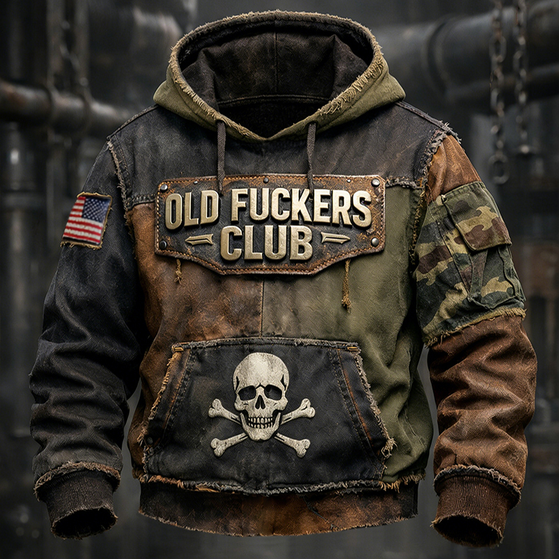 Men's Winter Retro Distressed Buffalo Soldier Print Hooded Top