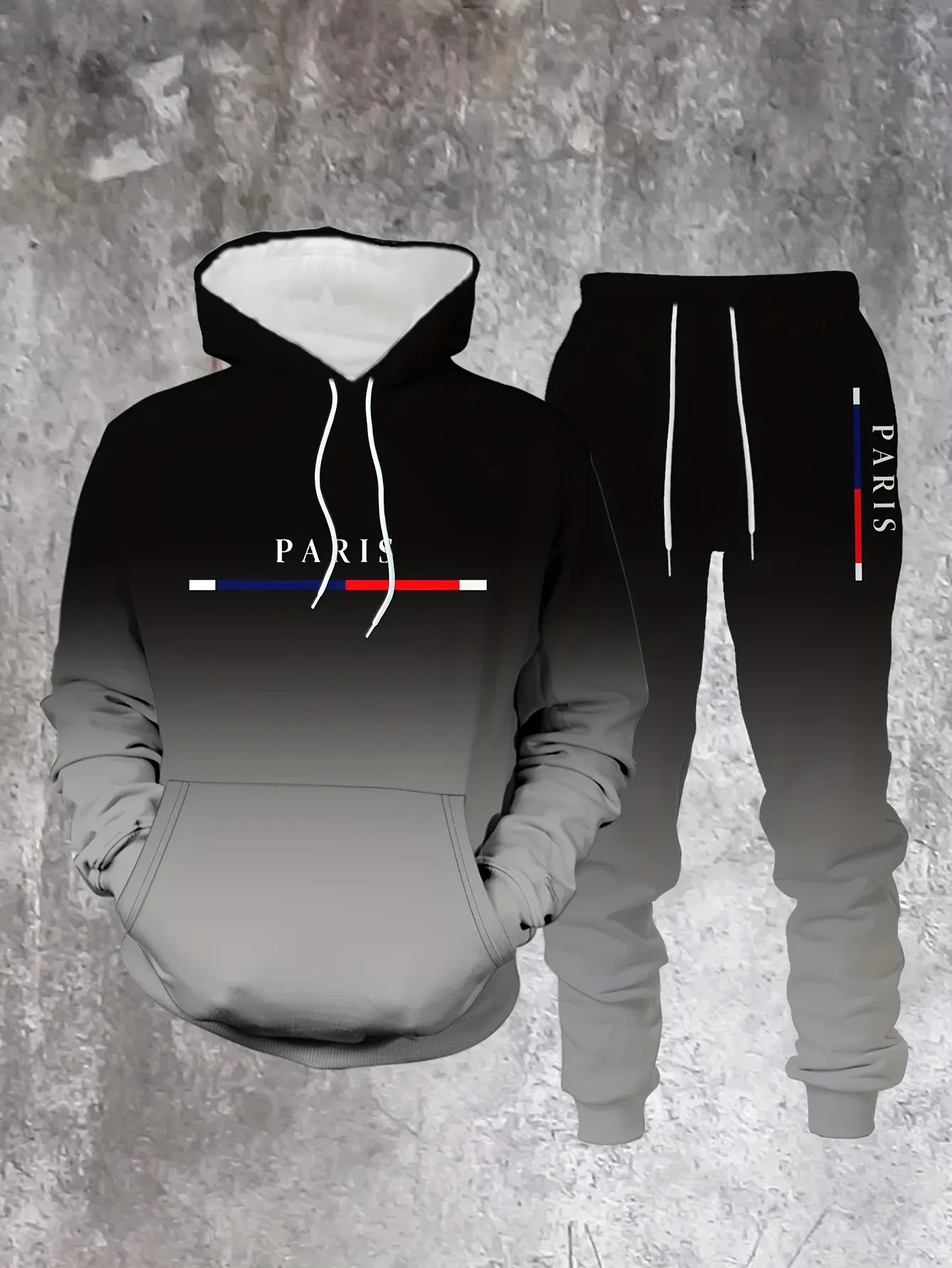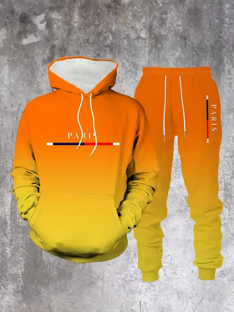 Gradient Color Paris Tracksuit Outfit Men's Street Fashion 3D Print Sport Hoodie 2-Piece Autumn/Winter Sweatshirt Sweatpants Set