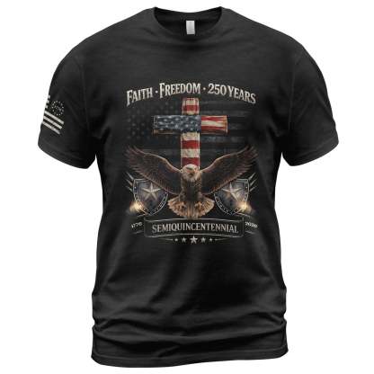 250 Years America Anniversary Shirt - Faith and Freedom Eagle Cross Christian Shirts