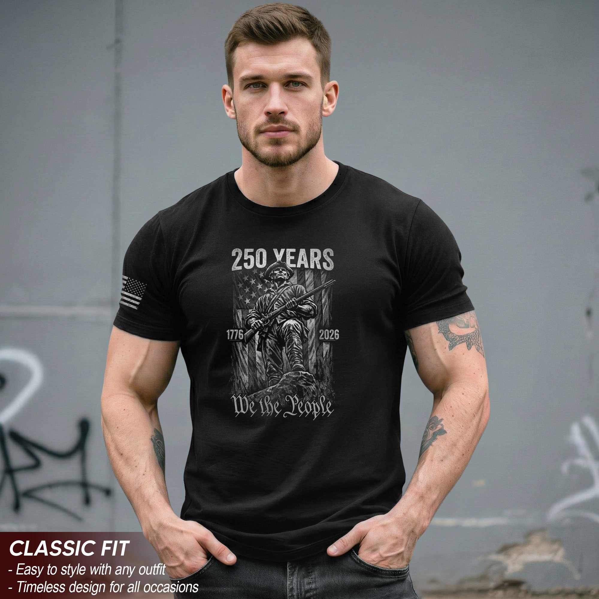 American Revolution 250th Anniversary 1776-2026 T-Shirt – We The People Minuteman Patriotic USA 250 Years Tee