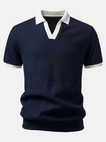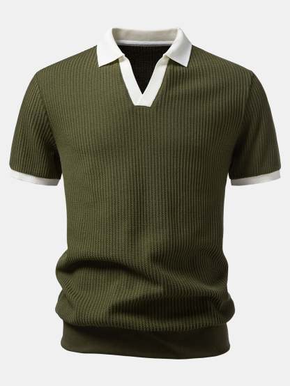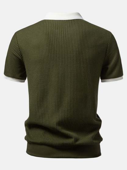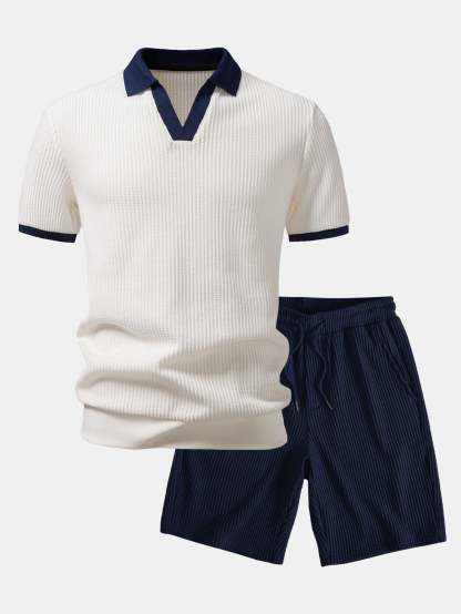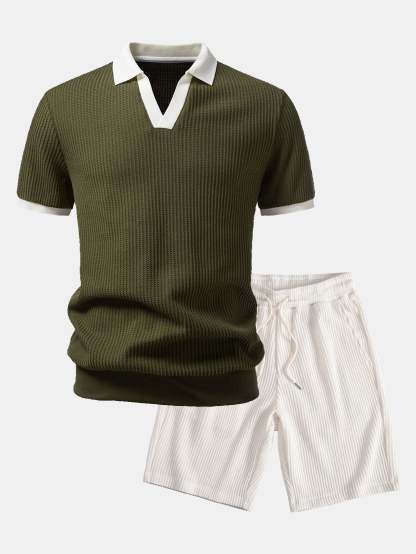 Contrast Knit Waffle Johnny Collar Polo & Drawstring Knitted Waffle Shorts – Mentalmens
