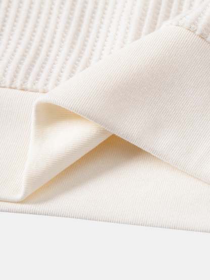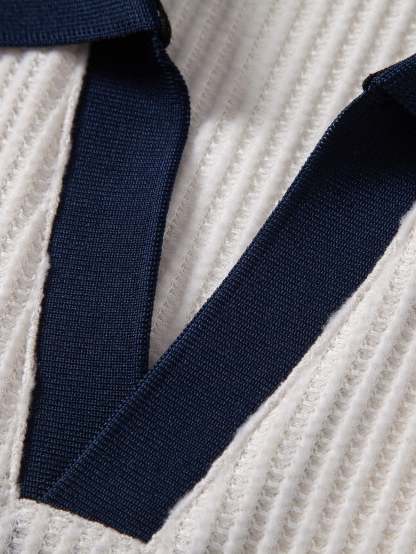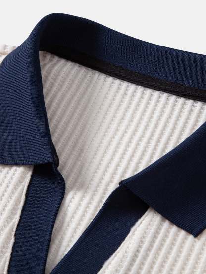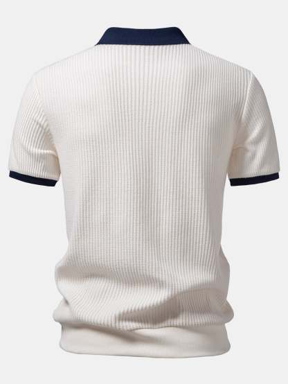 Contrast Knit Waffle Johnny Collar Polo & Drawstring Knitted Waffle Shorts