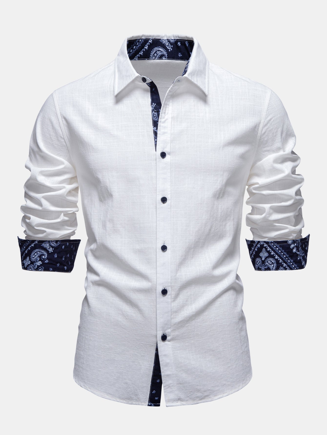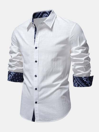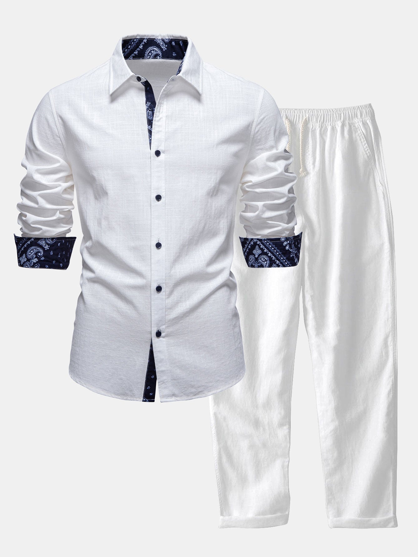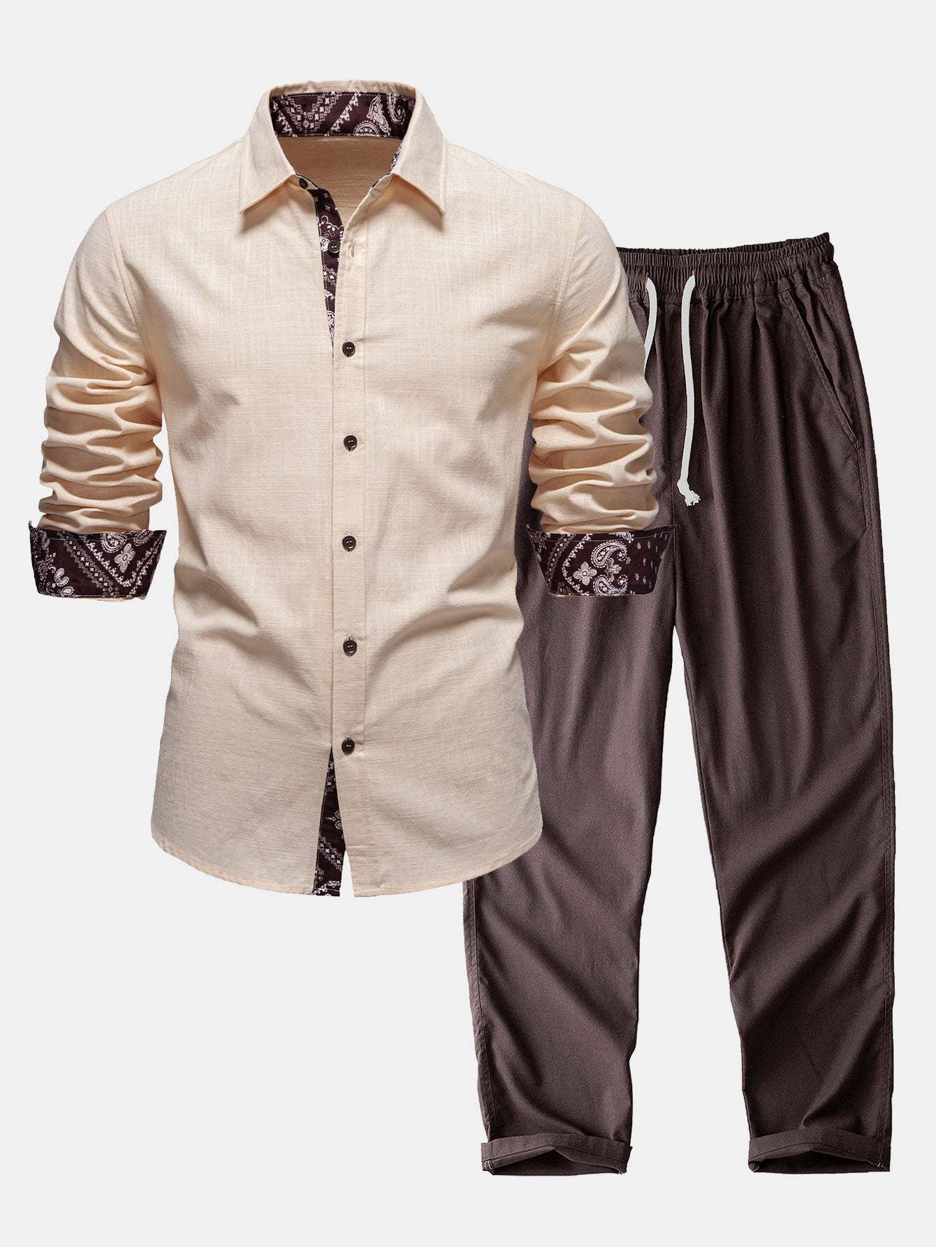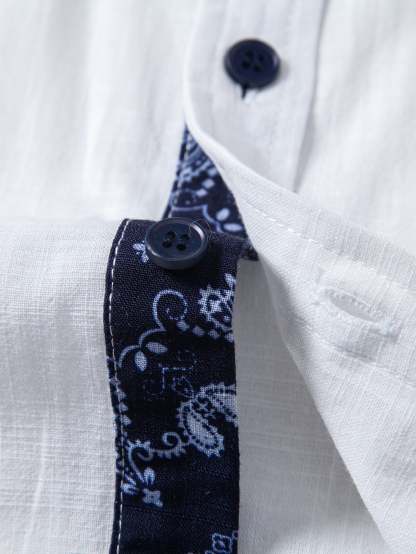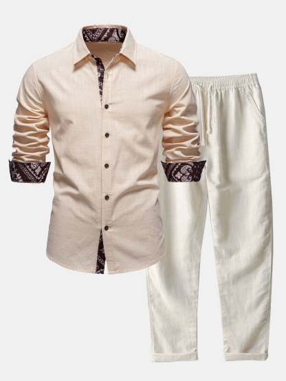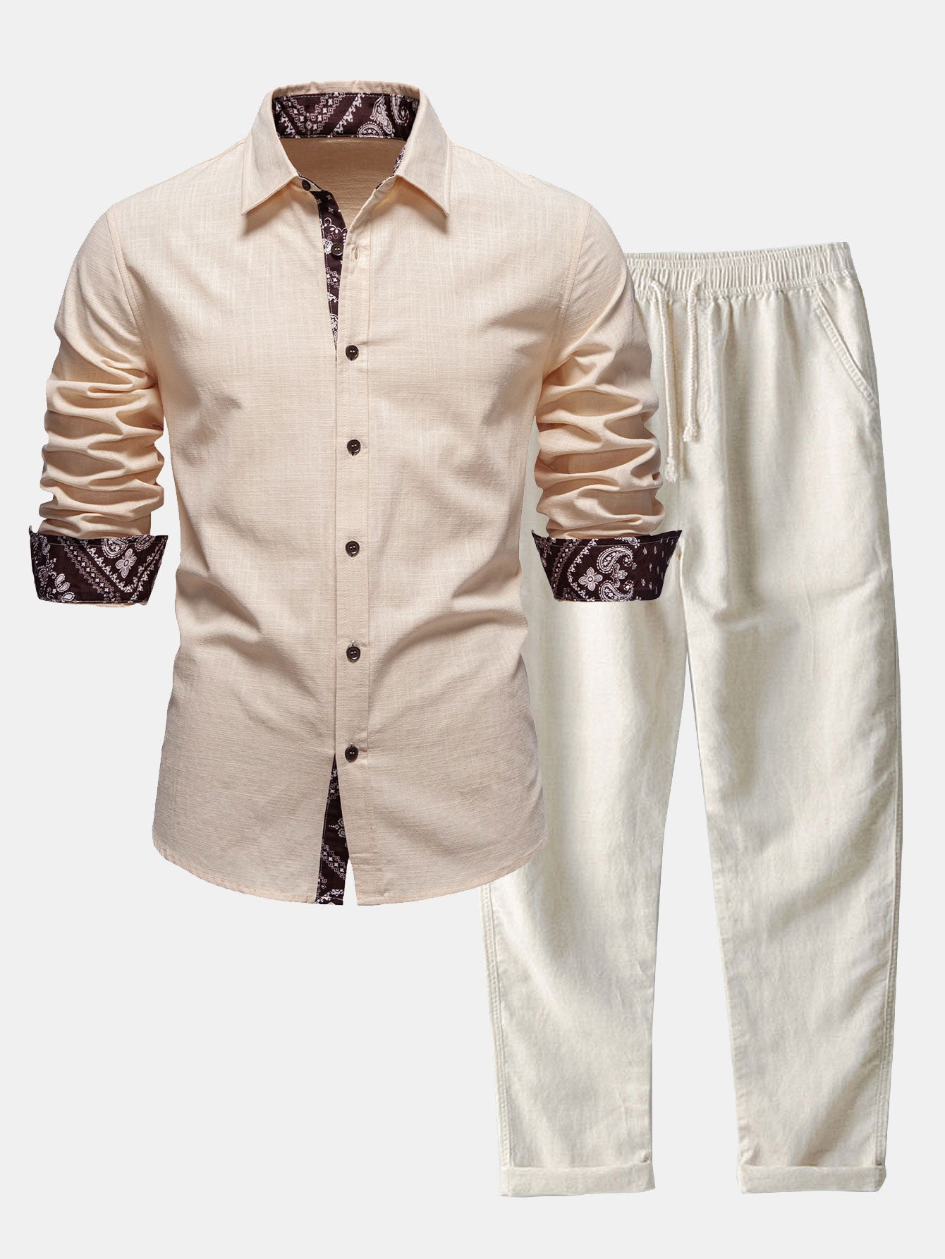 Elevate your warm-weather style with this contrast paisley print linen look shirt & straight leg linen pants set, designed for effortless sophistication and comfort. Crafted from lightweight, linen-look fabric, this ensemble offers a breathable, airy feel perfect for spring and summer wear.