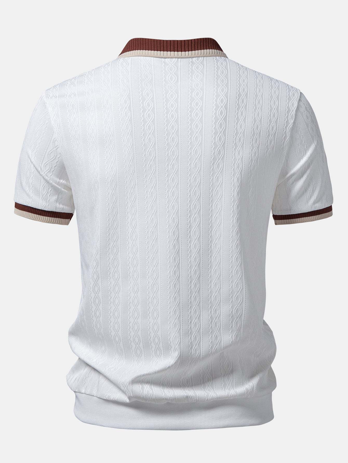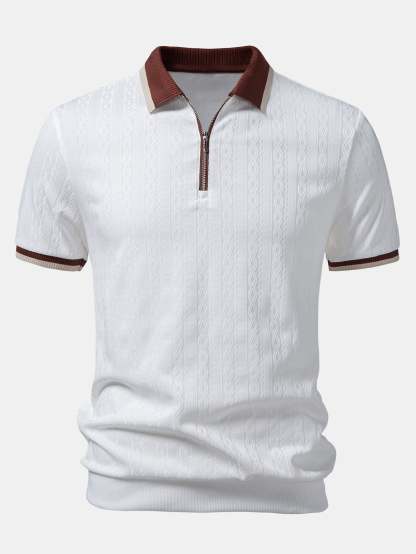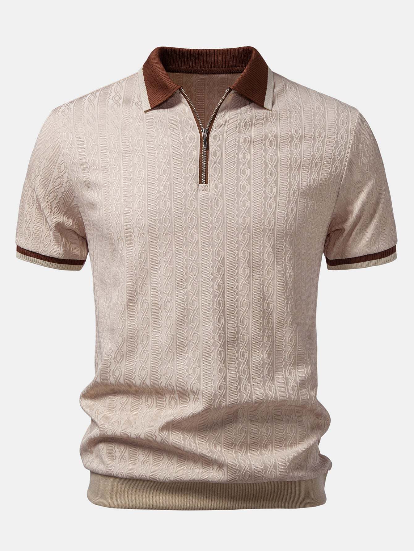 Upgrade your smart-casual wardrobe with this twisted jacquard quarter zip polo shirt, designed to combine refined texture with everyday comfort. Crafted from soft, breathable jacquard fabric, it features a twisted woven pattern that adds depth and a premium feel to a classic polo silhouette.