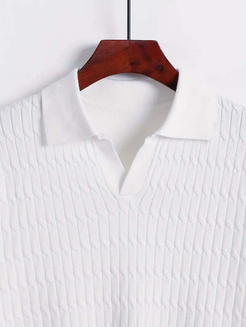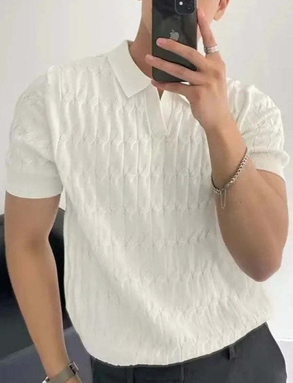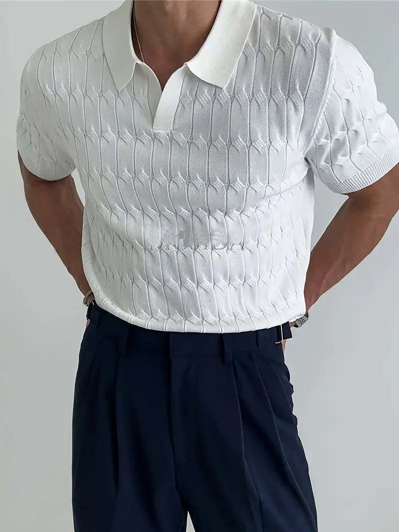 Discover Desiderio, a knit shirt with classic lapels for men that combines impeccable style with everyday comfort. Created for the modern man, this casual stretch knit features a breathable, slightly stretchy fabric that is ideal for outdoor activities or casual settings. With its refined lapel collar and short sleeves, Desiderio ensures a polished look while offering unbeatable comfort and fit. Its solid-color design makes it a versatile addition to any wardrobe, ready to elevate your style to new levels with ease. Perfect for those who appreciate sophistication and comfort in a single garment.