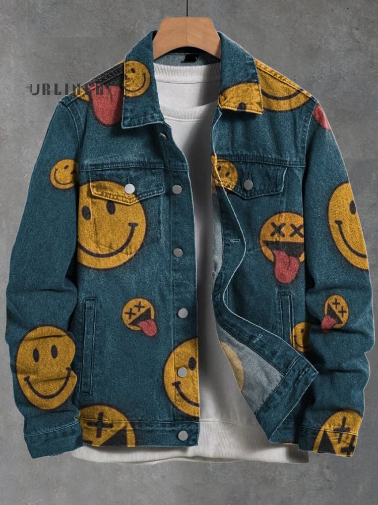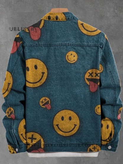 Funny Smiley Emoji Decorative Pattern Casual Denim Jacket