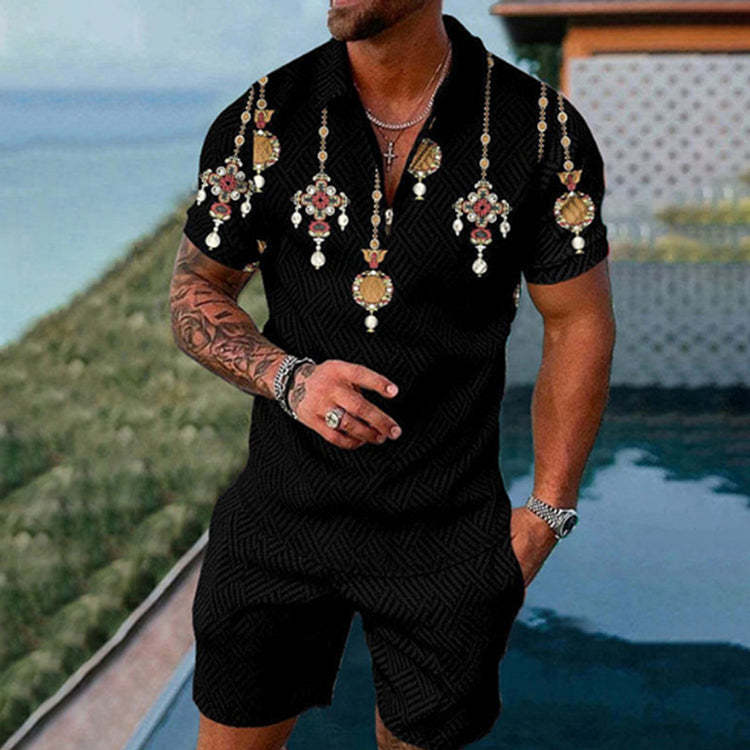 Gemstone Pendant Polo Shirt And Shorts Mediterranean Style Suits